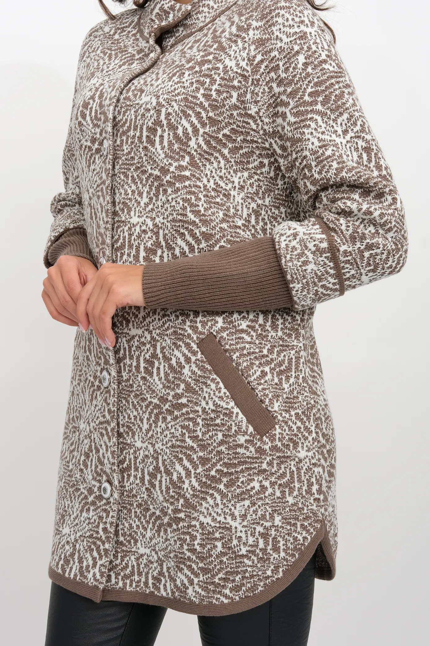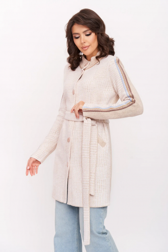 Элегантный вязаный жакет - несомненный хит сезона. Изумительно красивое полотно структурной вязки с мерцающей подсветкой по изнанке. Застежка на пуговицы, карманы в листочку, функциональные. Рукава длинные на манжете. Манжет фиксированный. Кардиган выглядит женственно и элегантно. Он отлично сочетается с юбкой-карандашом и брюками. кофе