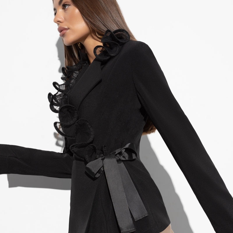 Жакет на запах превосходно сядет на фигуру любого типа и подчеркнет только достоинства. Сила девушки в ее женственности, поэтому с новым жакетом от CHARUTTI ты – непобедима!