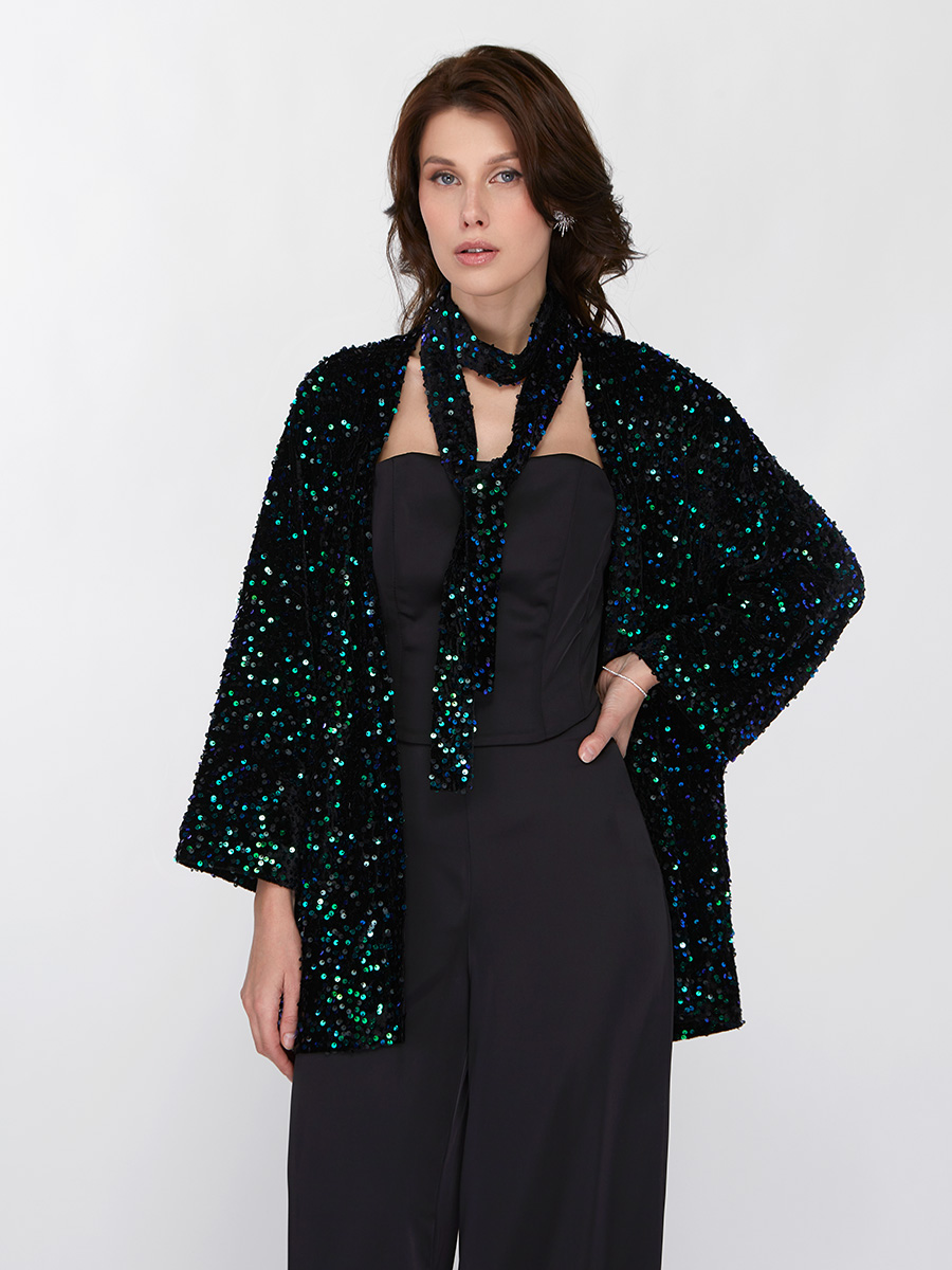 Жакет из паеток с поясом OD-903-1 зеленый