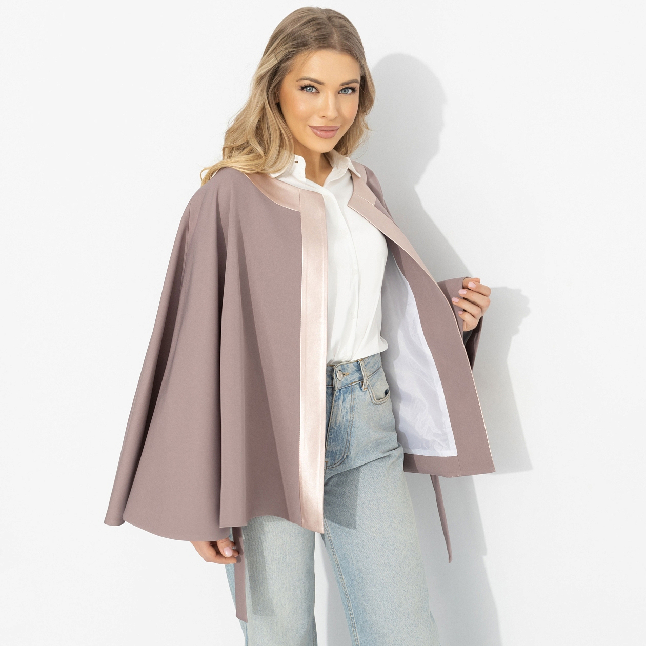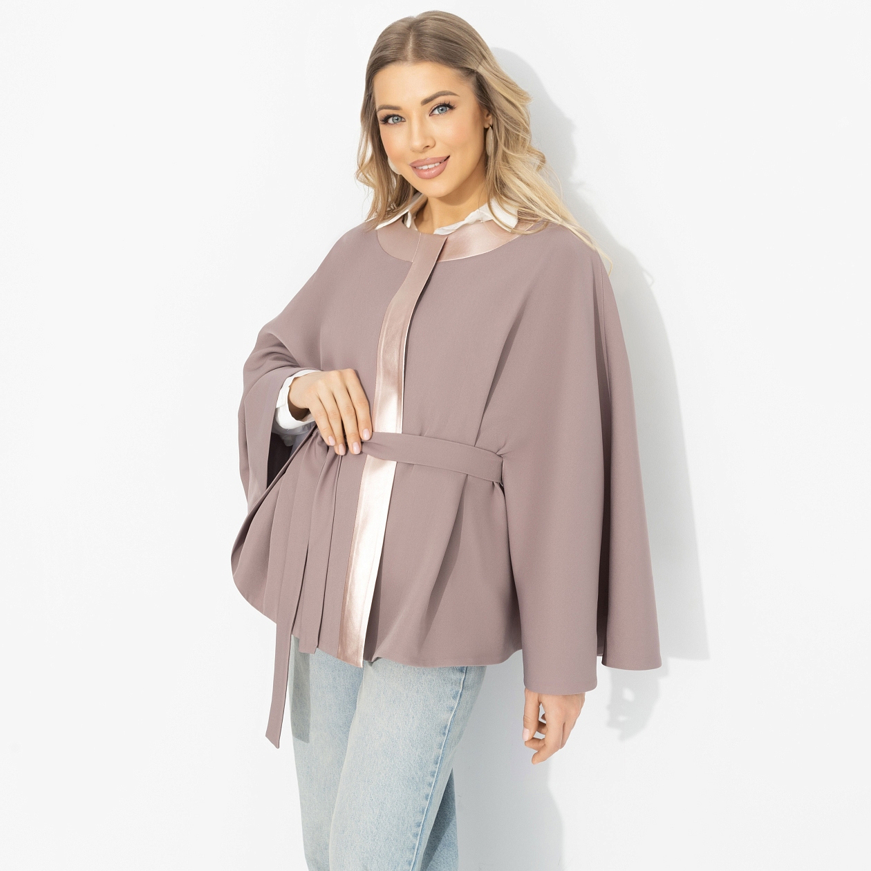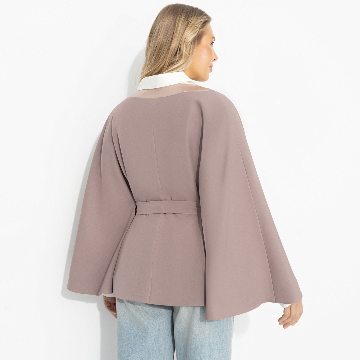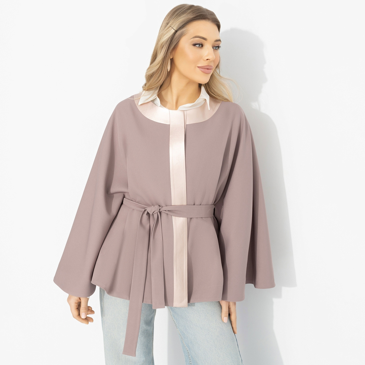 Ловишь себя на мысли, что сегодня хочется больше мягкости – в движениях, мыслях, взглядах. Как по волшебству, твой день складывается из маленьких красивых моментов: спокойный разговор с подругой, приятный свет в любимой кофейне, ощущение внутреннего баланса. Оттенок нежного вереска усиливает твой типаж и помогает ему раскрыться. Жакет от ЧАРУТТИ формирует выразительный, но лёгкий силуэт. Пояс аккуратно выделяет талию, а свободный крой с широкими рукавами добавляет образу стильную динамику. Идеален для тех, кто ценит современную женственность. Уверены, это про тебя!
