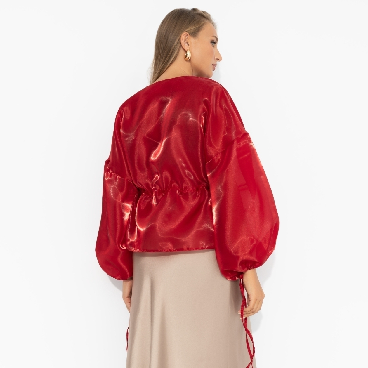 Жакет ЧАРУТТИ мгновенно приковывает внимание смелым цветом, символизирующим силу и страсть. Объемные рукава создают мощный и выразительный силуэт, подчеркивающий индивидуальность. Жакет создан для уверенных в себе женщин, которые гордо несут свою уникальность. Жакет объемного кроя. Есть регулируемая кулиска на талии. Линия плеча спущена. Есть шнуровка по манжетам. Материал изделия слегка просвечивает.