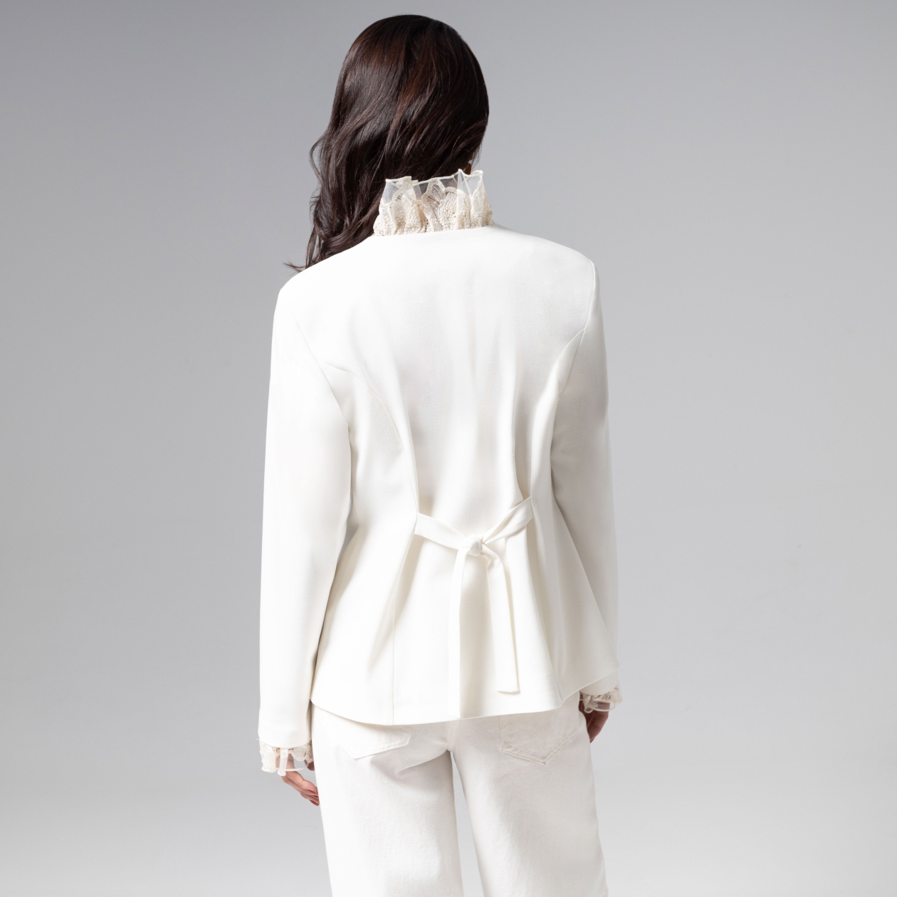 Слегка приталенный силуэт жакета от ЧАРУТТИ станет вашей визитной карточкой. Эффект безупречной элегантности без единого намека на высокомерие. Объемный кружевной декор, выполненный из материала высочайшего качества, обрамляет, словно драгоценная оправа и превращает обычный предмет гардероба в произведение портновского искусства. Чистота линий, лаконичность и классический молочный цвет делают этот жакет идеальным выбором для светских раутов или мероприятий судьбоносного масштаба. Филигранное воплощение роскоши от ЧАРУТТИ.