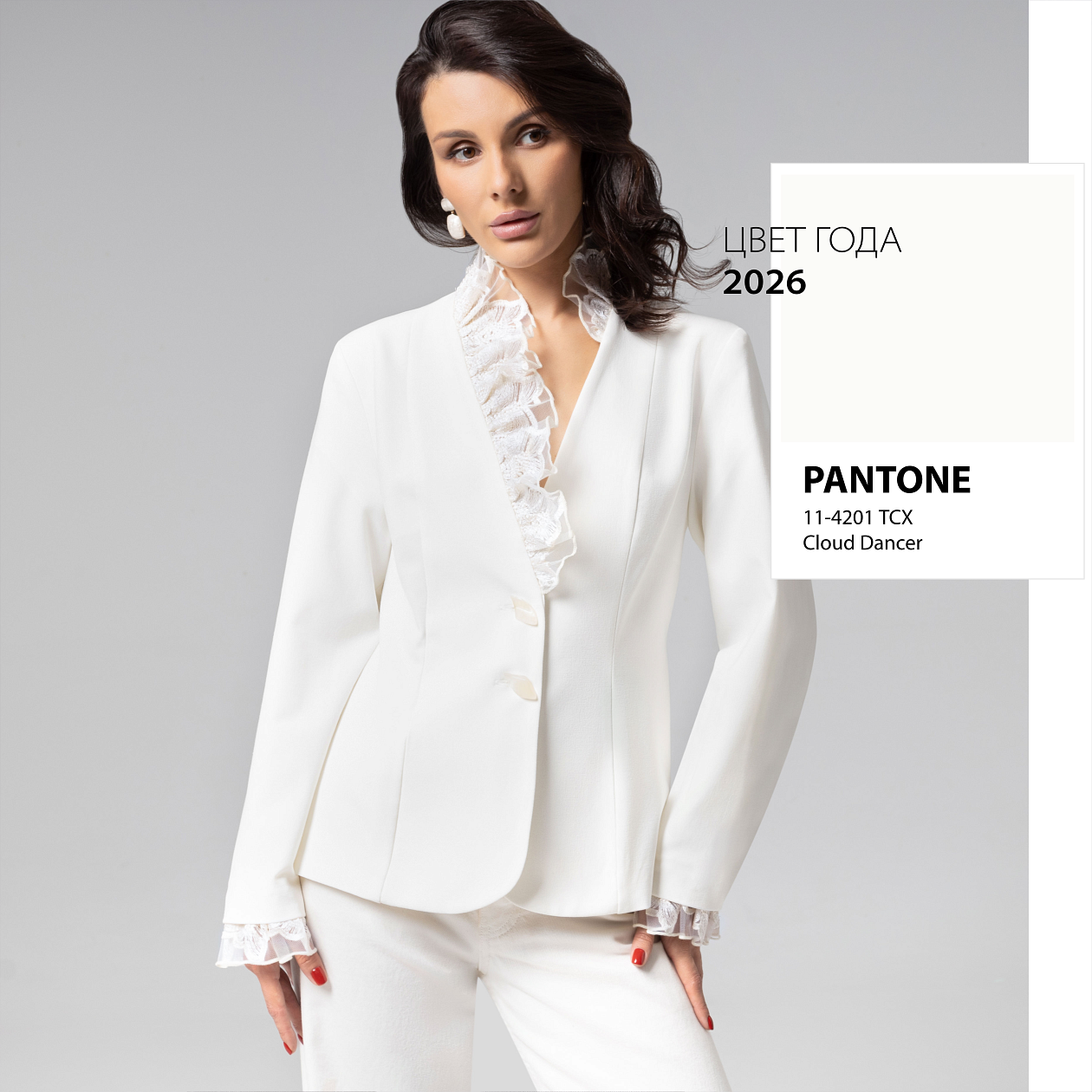 Современная классика с романтичной нотой. Молочный жакет ЧАРУТТИ превращает любой образ в воплощение безупречного вкуса. Мягкий светлый оттенок подчеркивает утончённость, а фактура и вышивка добавляют лёгкий аромат роскоши. Жакет полуприлегающего силуэта из костюмной ткани «тиаф». Акцент – отделка из сетки с вышивкой. Застёжка на пуговицу, внутренние вытачки формируют женственный контур.