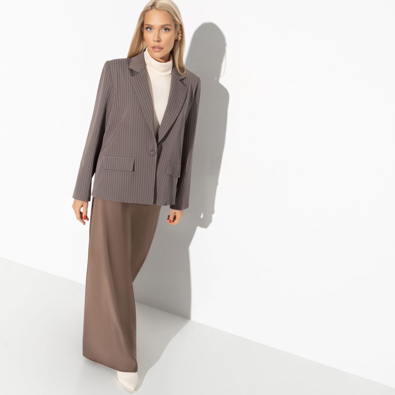 Настроение – пить какао на фундучном молоке, выбирать старые голливудские фильмы на вечер и планировать отпуск в осеннюю Европу. Осталось надеть жакет CHARUTTI и немного поработать, чтобы исполнить свои большие и маленькие мечты. Жакет свободного кроя, однобортный, с лацканами. Имитация карманов. Фурнитура в тон изделия. Есть подклад и подплечники. Ткань в тонкую белую полоску.