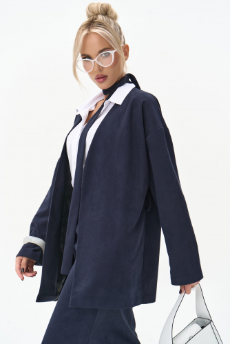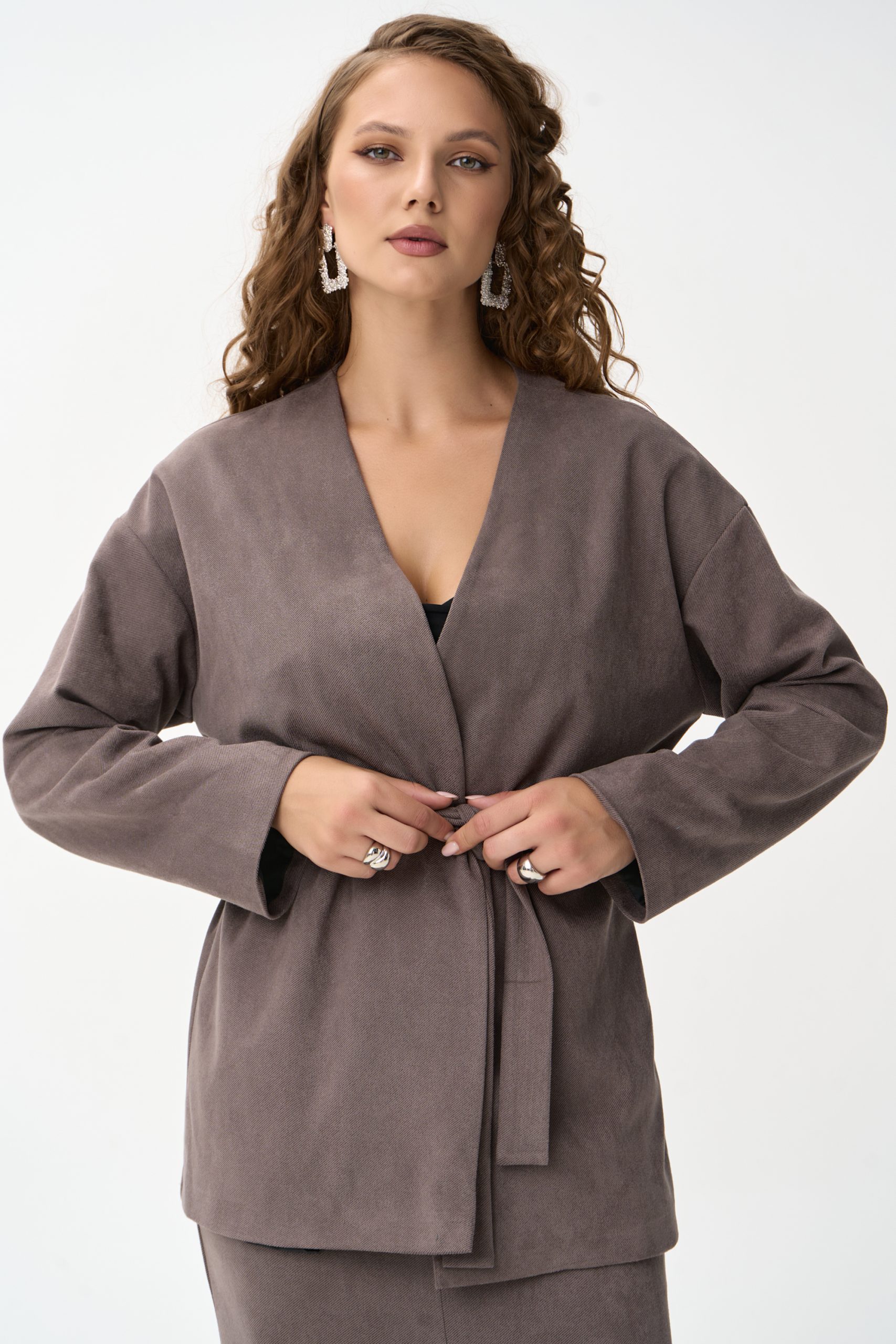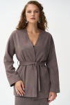 Удлинённый жакет с поясом формирует чёткий силуэт и подчёркивает талию. Он выполнен на подкладе из качественной ткани, что обеспечивает комфорт в носке и аккуратную посадку.
