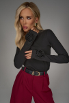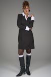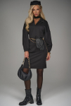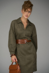 Аккуратный вырез спереди добавляет женственности, а плотный вельвет делает образ актуальным для осени.