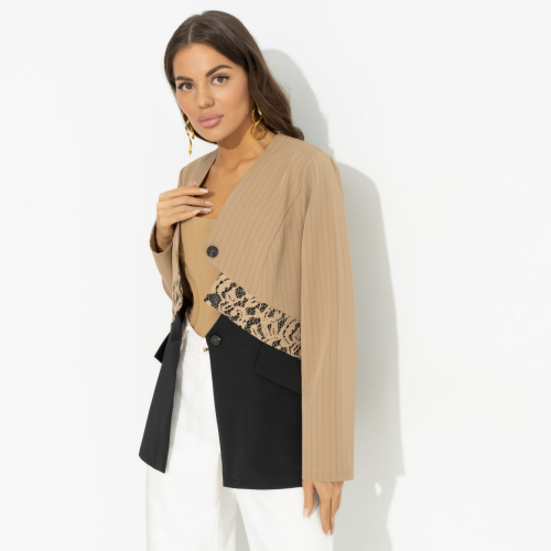 По европейскому этикету самым подходящим деловому стилю считается коричневый цвет. Черный – на праздник, синий – на вечеринку, коричневый – на работу. Мы в CHARUTTI совершенно согласны с правилом. Рекомендуем дополнить землистый цвет нежно-голубой рубашкой для достижения вау-эффекта. Жакет однобортный без лацканов. Прямой крой. Жакет на подплечниках, есть карманы. Изделие с подкладом.