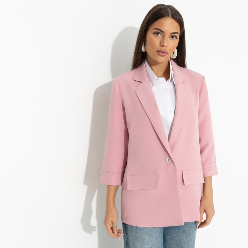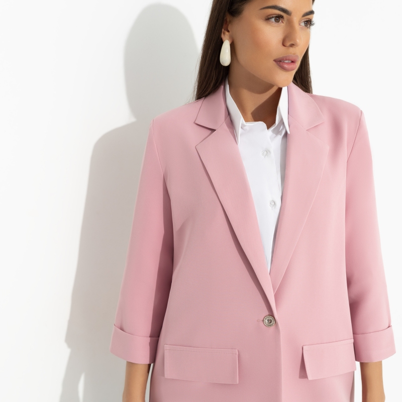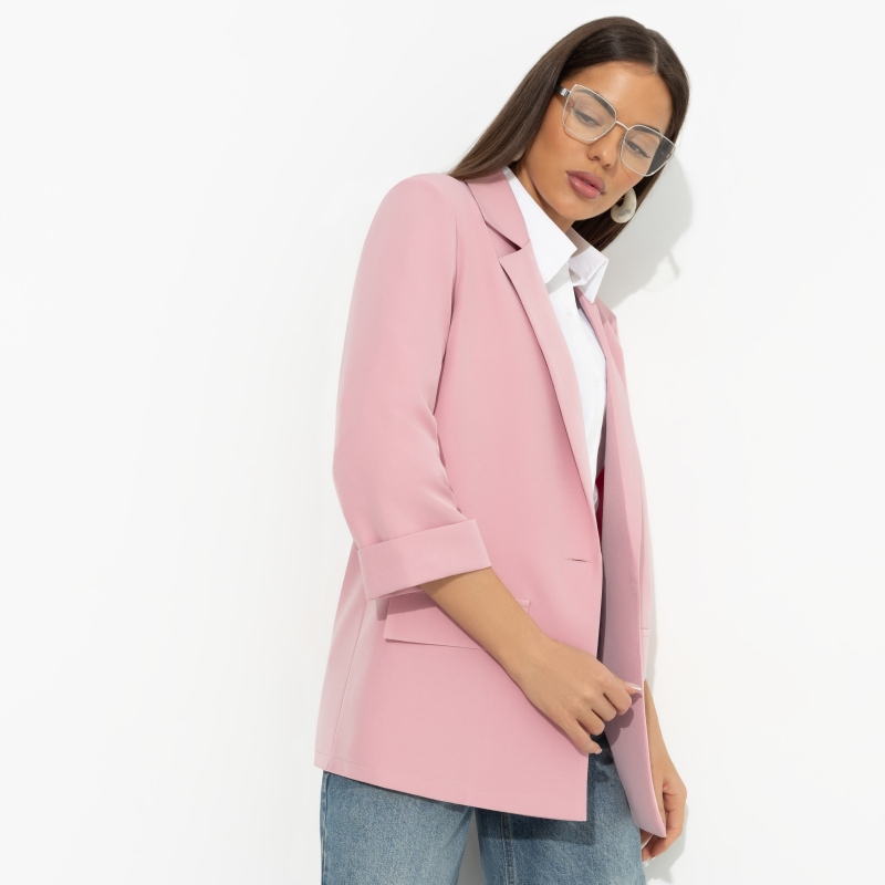 Удивительное дело – на всех ваших совместных фото вокруг него маленькие сердечки. Он не может скрыть свой влюбленности или этот розовый жакет CHARUTTI отражается от его очков. Впрочем, не важно. Жакет однобортный с лацканами. Изделие прямого силуэта без подклада. Рукав укорочен. Имитация карманов по передней части изделия. Есть подплечники.