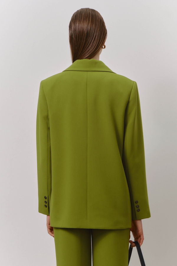 Жакет прямого силуэта из костюмного полотна. По переду застёжка на петли и пуговицы, карманы в рельефном шве. Воротник английский. Рукав длинный. Изделие на подкладке из поливискозы.