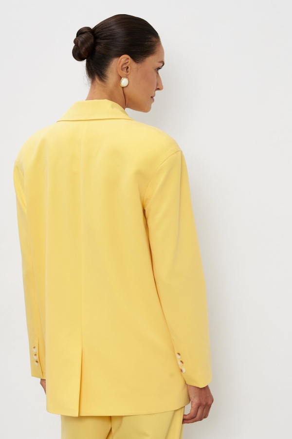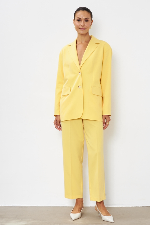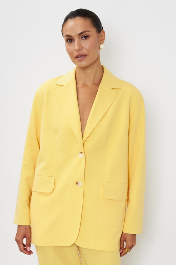 Однобортный жакет прямого кроя из высококачественной костюмной поливискозы. Модель с мягкой линией плеча. Жакет оформлен классическим английским воротником с лацканами, прорезными карманами с клапанами.