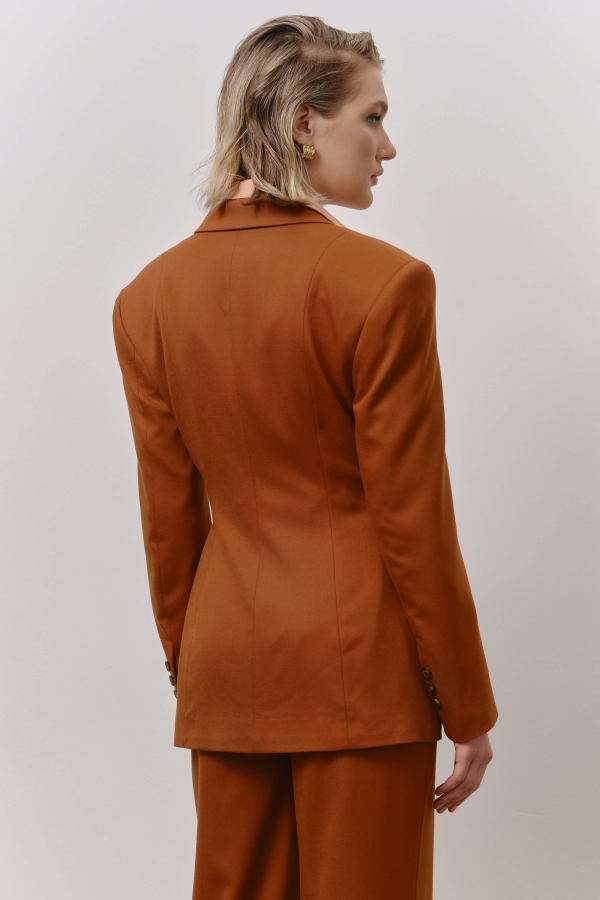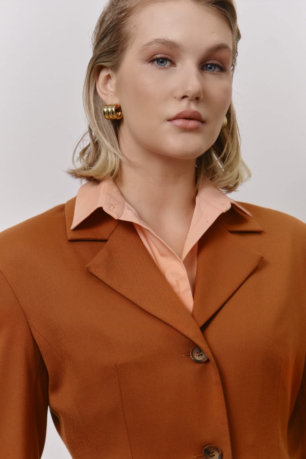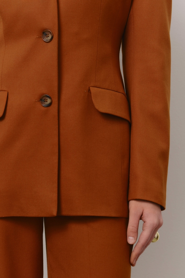 Жакет актуального кроя из костюмной поливискозы. Модель приталенного силуэта. Жакет оформлен ярко выраженной линией плеч с зауженной талией. Воротник классический английский с лацканами. Рукав втачной со шлицей на пуговицы. По переду декоративная листочка и однобортная застежка с фактурными пуговицами в тон. Изделие на подкладе.