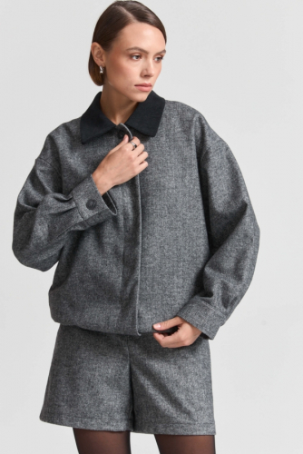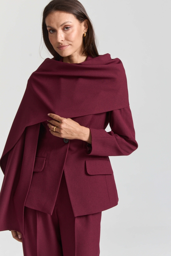 Женственный трендовый жакет со съемным кейпом. Жакет Х-образного силуэта, застежка на одну пуговицу на талии. Легкий О-силуэт рукава. Подклад из поливискозы, карманы прорезные с накладными клапанами. В комплекте кейп из основной ткани.