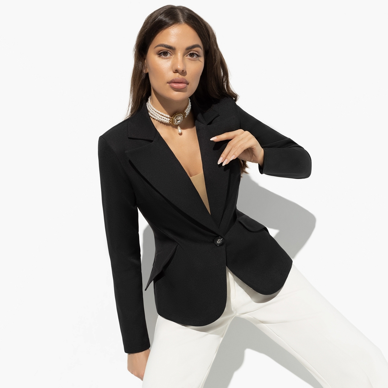 Телепорт к вершинам карьерного успеха выглядит так. Жакет в классическом черном цвете трендового приталенного силуэта – для самого быстрого перемещения на топовые должности.