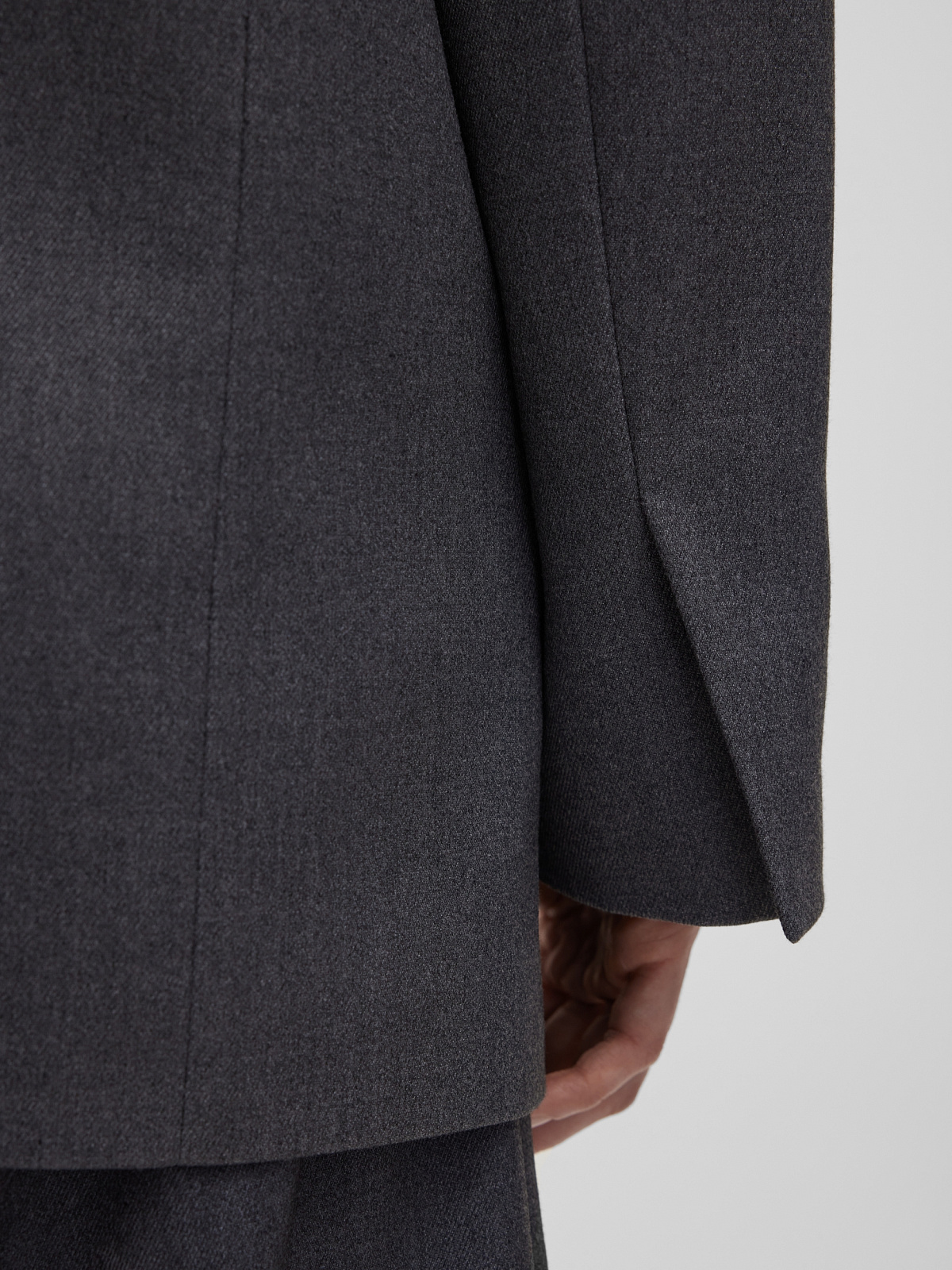 В комплекте с брюками свободного кроя с защипами этот жакет создает гармоничный и современный образ. Такой костюм легко сочетать как с рубашками для официальных мероприятий, так и с футболками и поло для повседневной носки, позволяя вам выглядеть гармонично в любой ситуации.