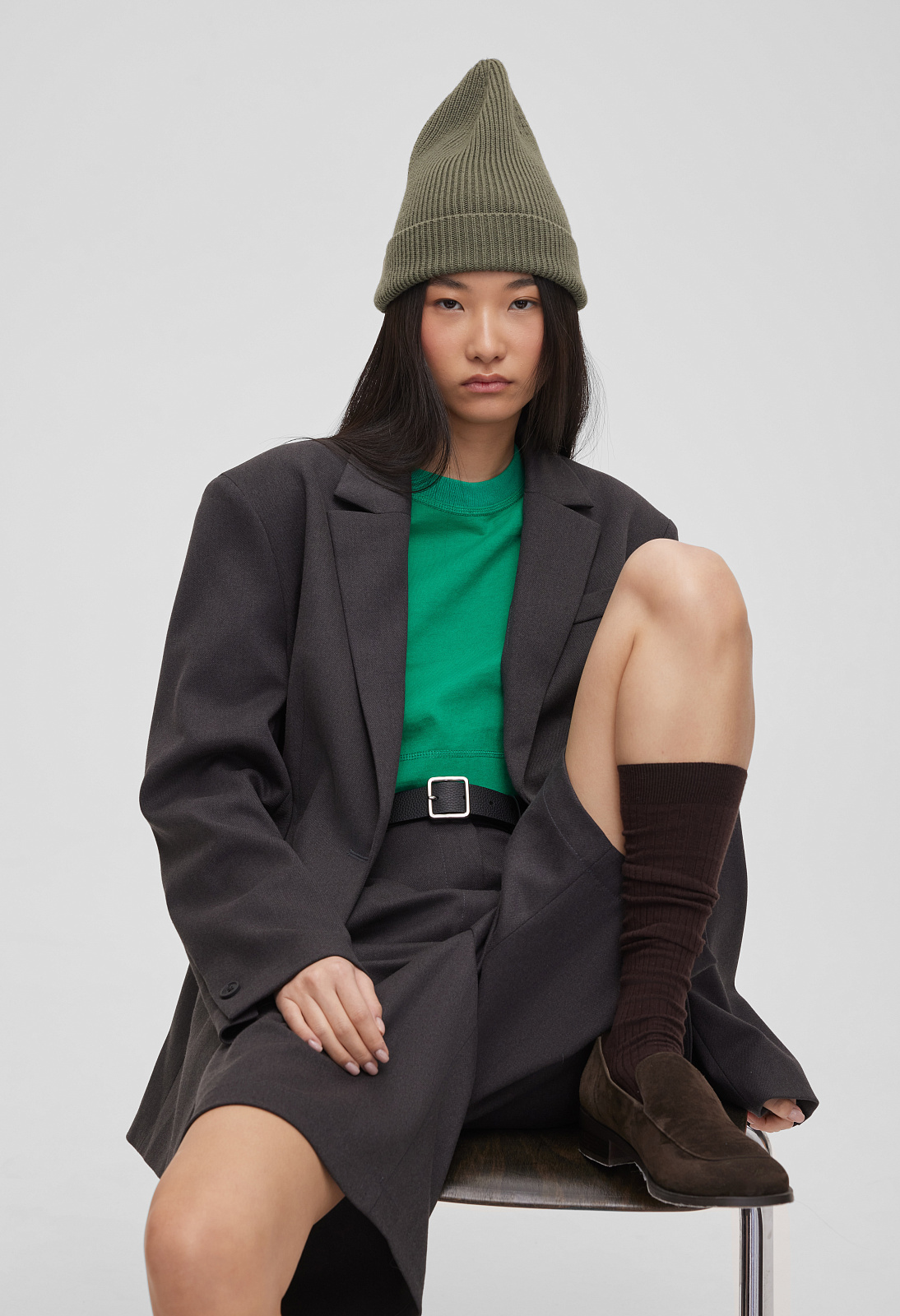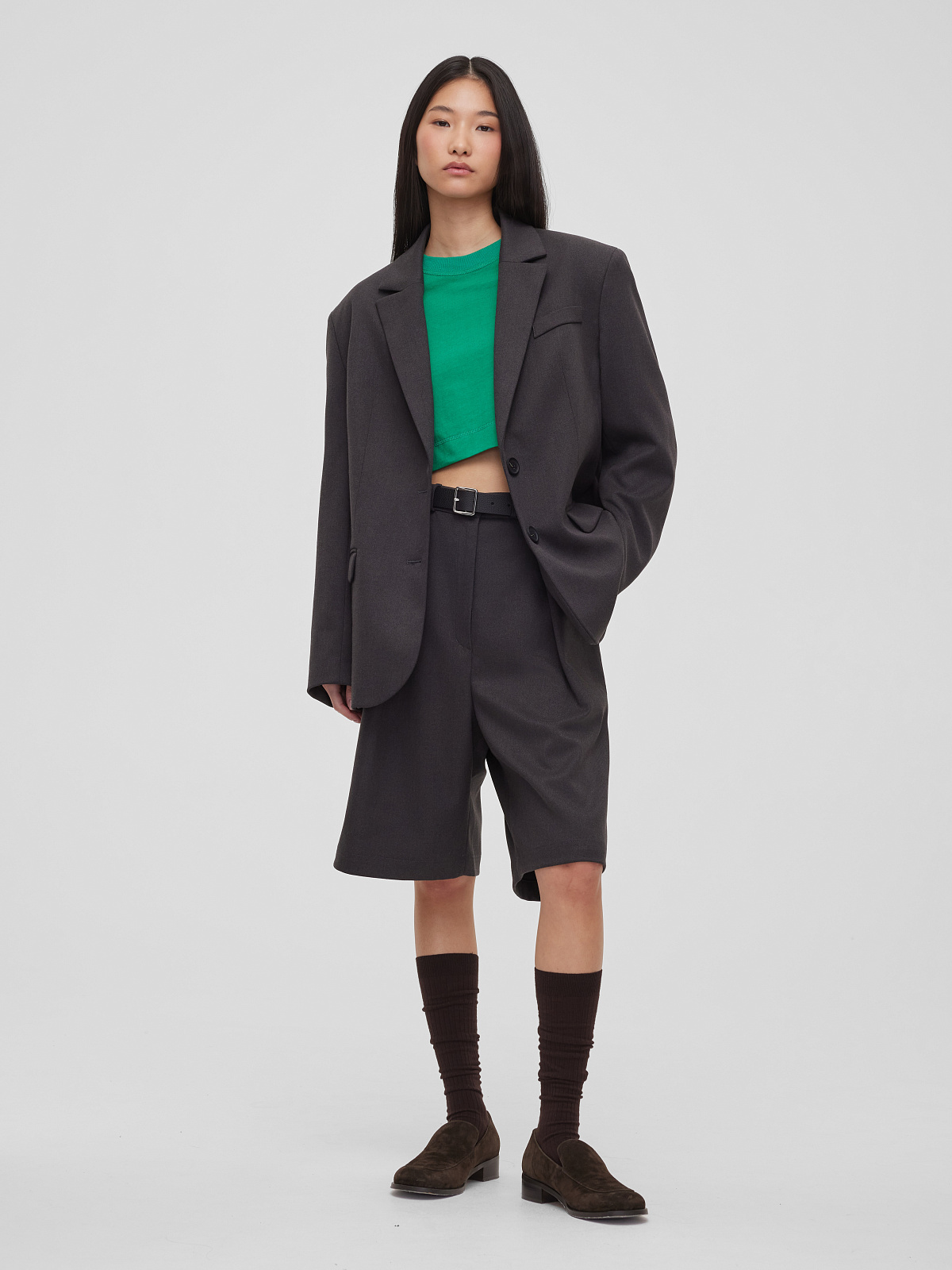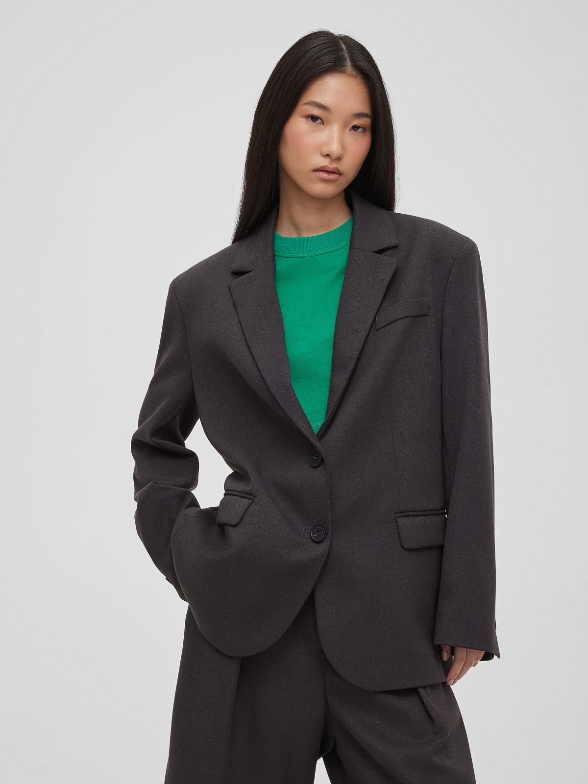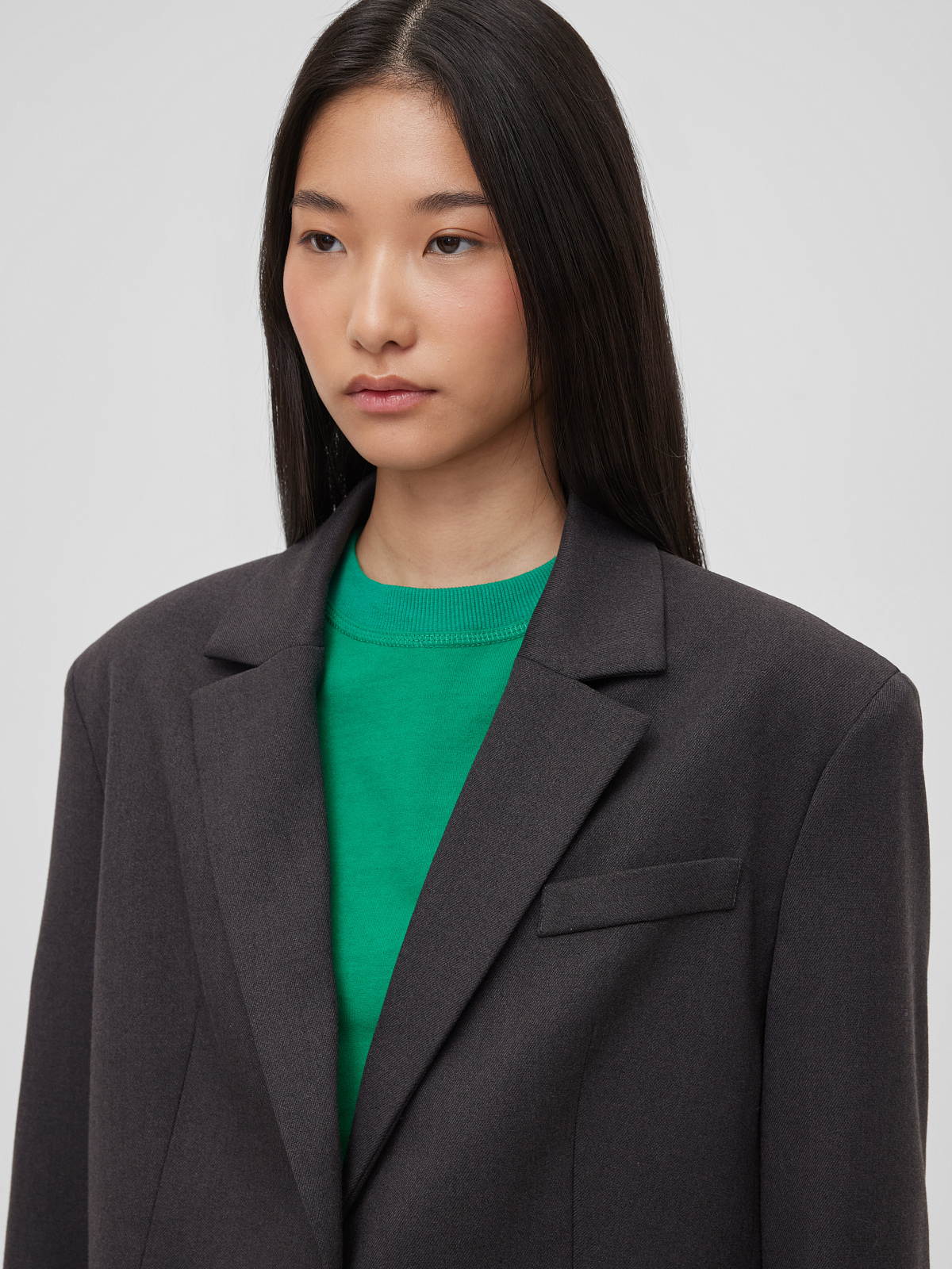5595р9325рЖакет свободного кроя однобортный, графитовый