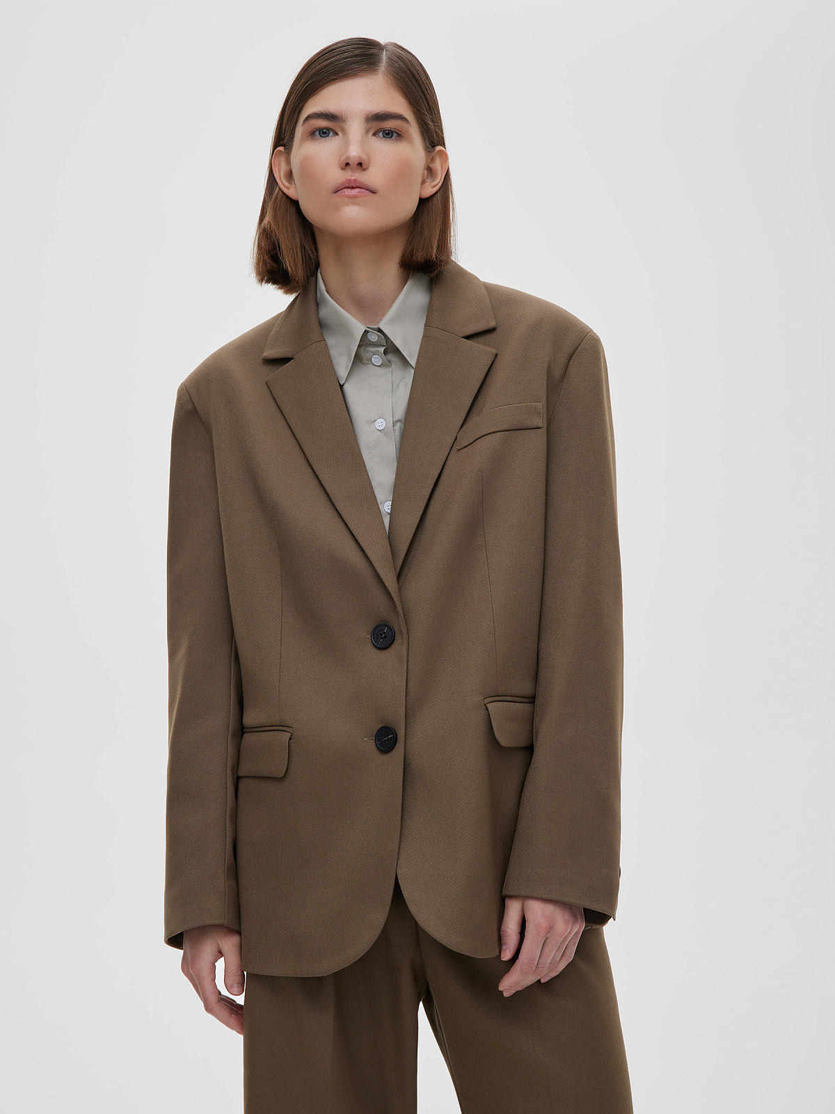 5595р9325рЖакет свободного кроя однобортный, кофейный