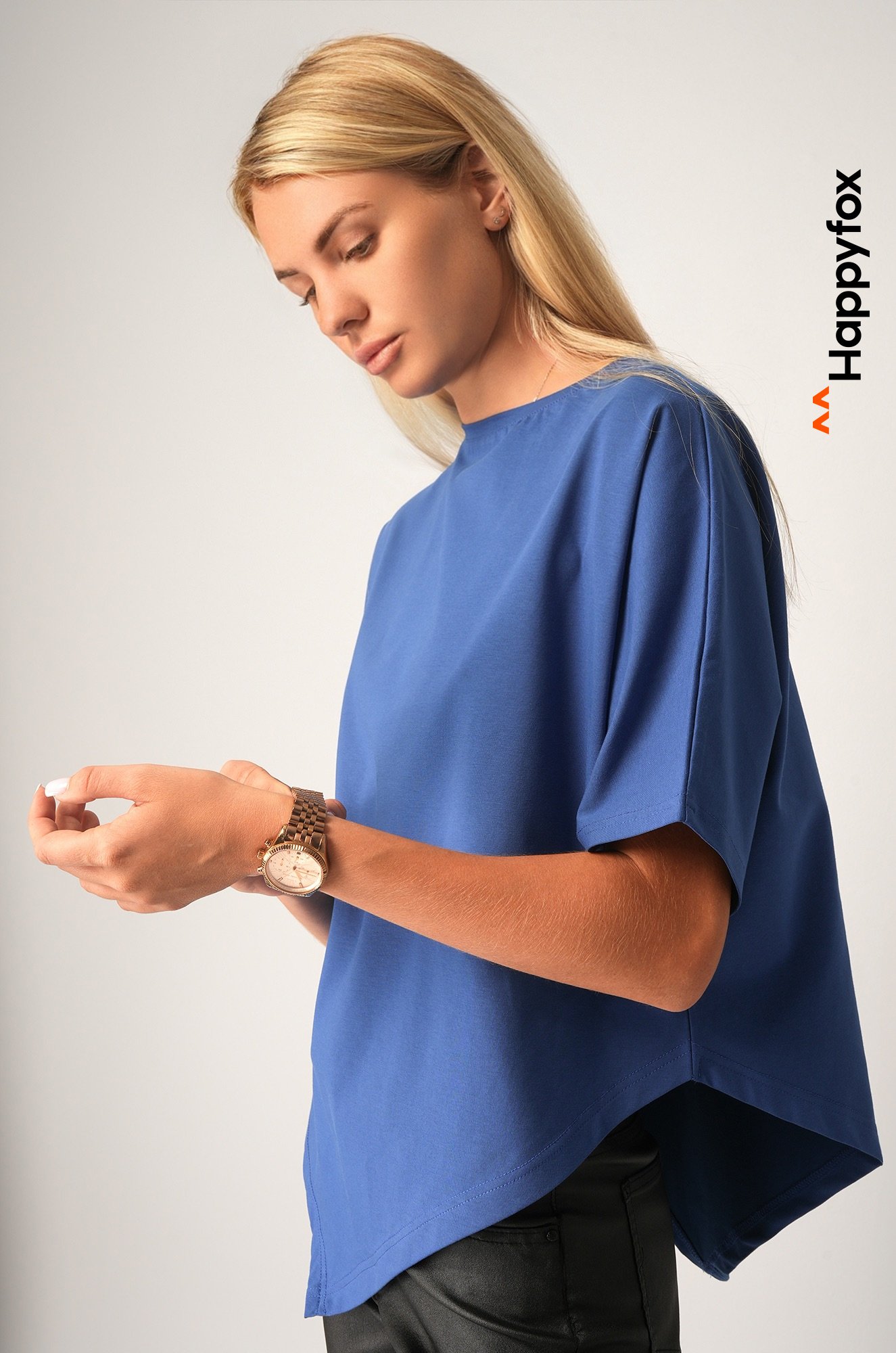 Женская футболка с асимметричным низом создана для тех, кто выбирает базу с характером — удобную, стильную и запоминающуюся.