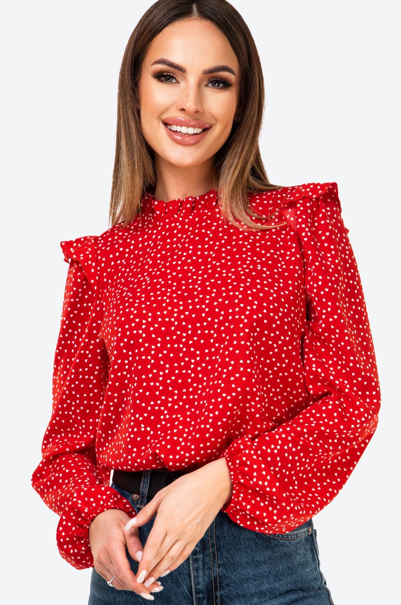 Яркая и романтичная красная блуза с длинным рукавом выполнена из качественной ткани прадо. Летящая ткань не электризуется и еле касается кожи, даря приятные ощущения.