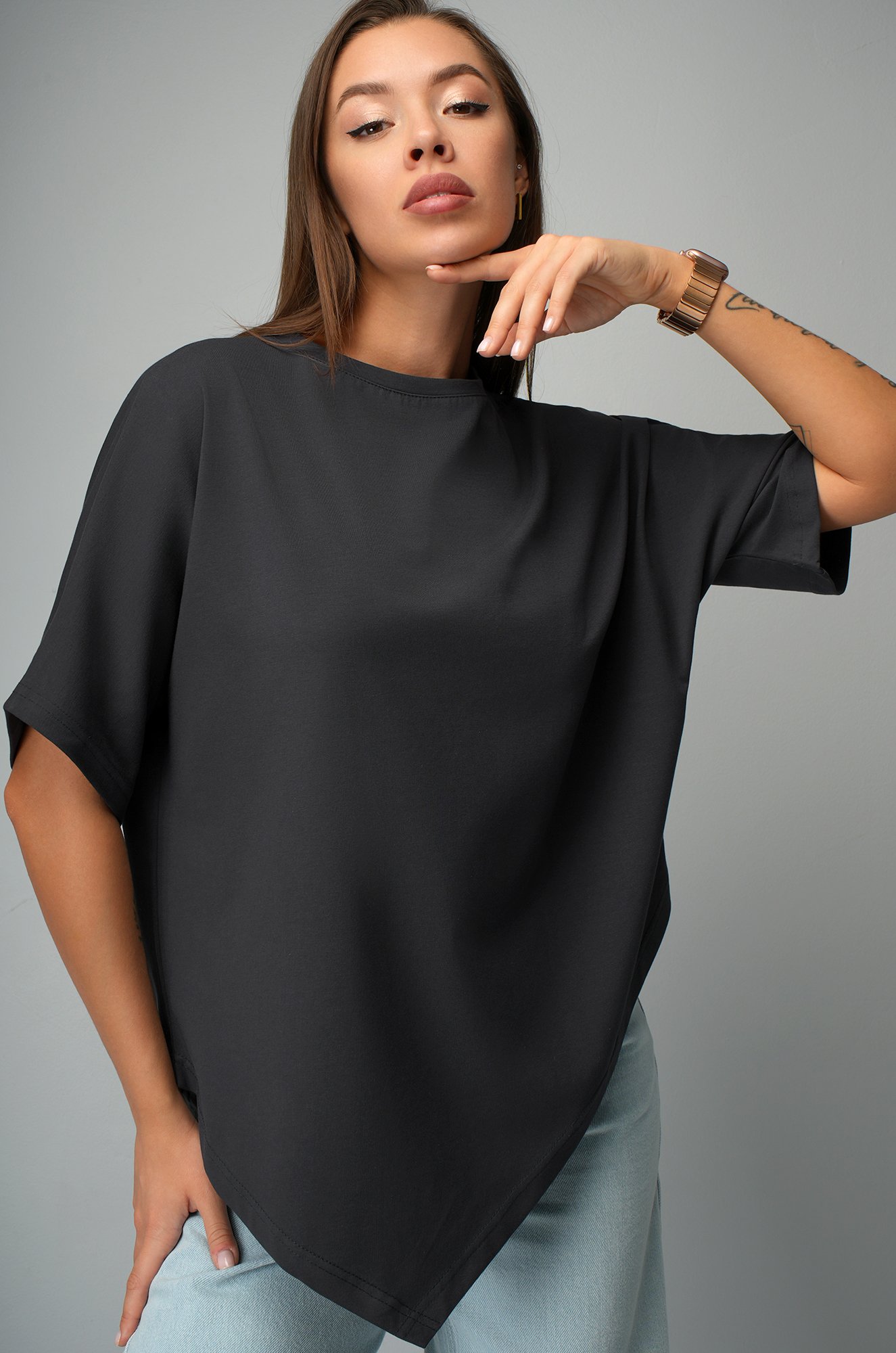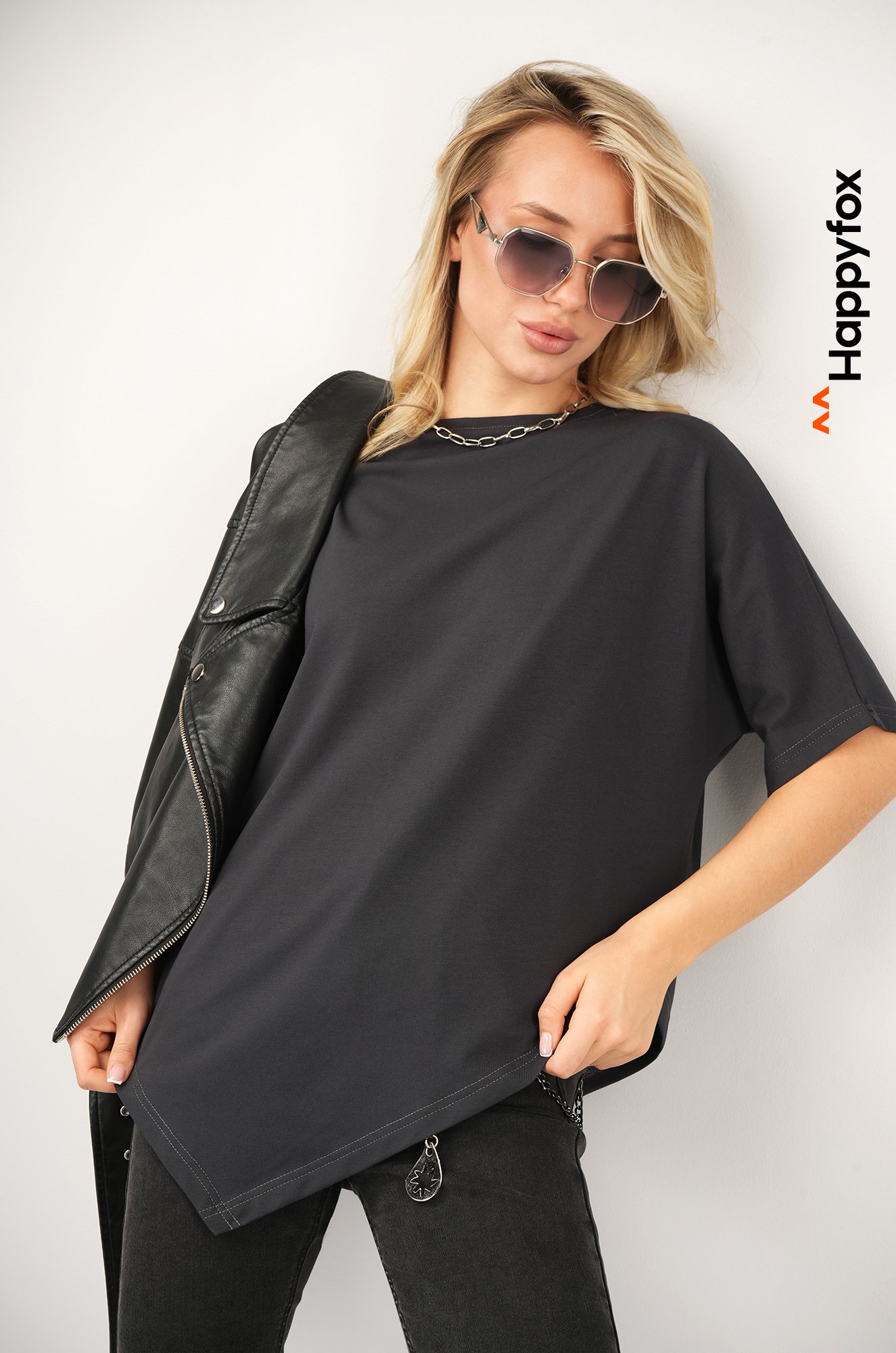 Женская футболка с асимметричным низом — это стильная базовая модель, которая объединяет комфорт и выразительность.