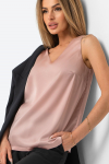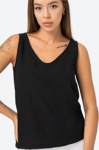 Легкая, как дуновение ветерка! Летняя женская блузка выполнена из тонкой ткани с добавлением вискозы. Базовая модель прямого кроя, без рукава. V-образный вырез деликатно открывает грудь.
