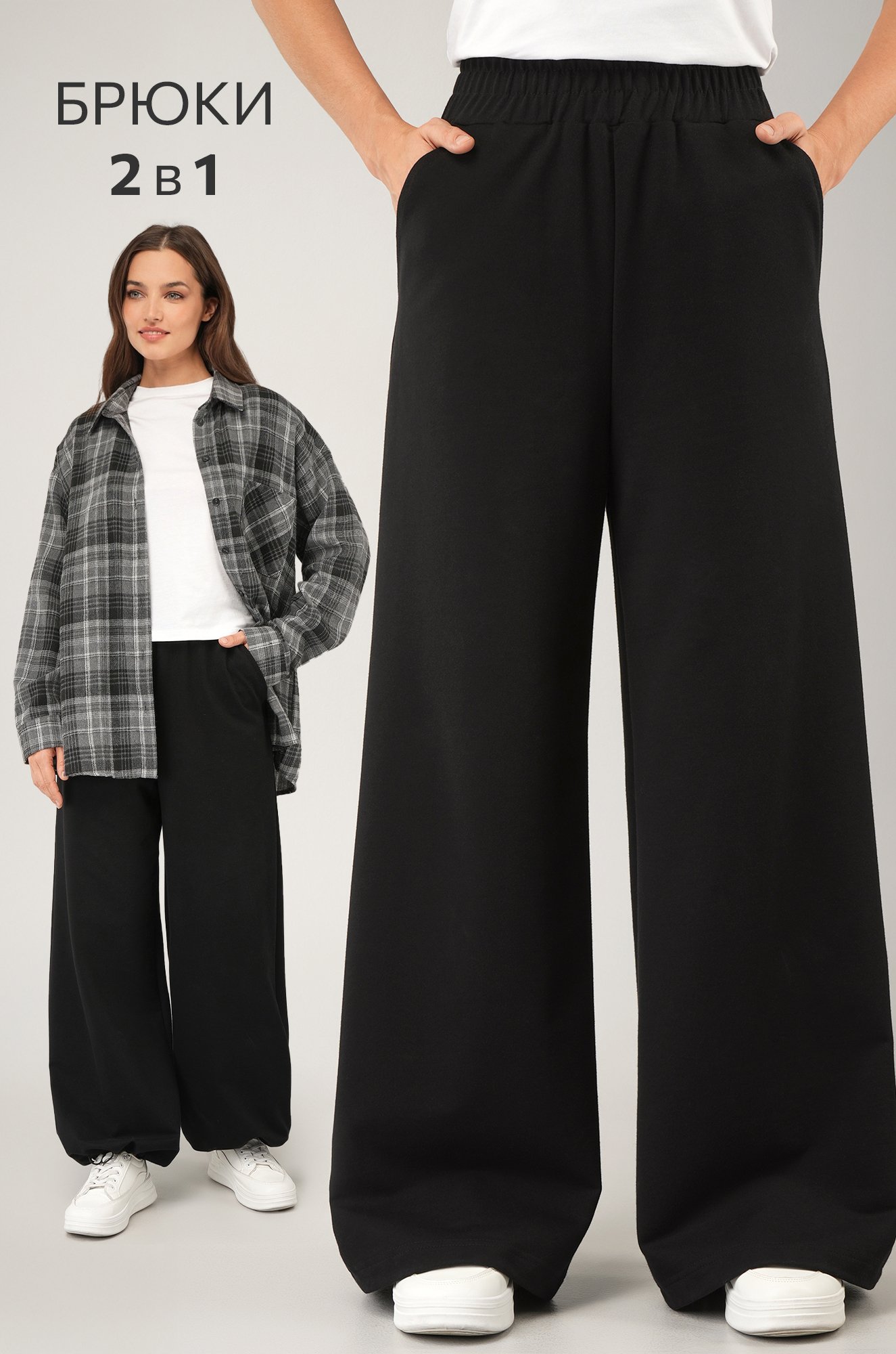 – утяжка со стопперами по низу позволяет легко превратить брюки палаццо в джоггеры;