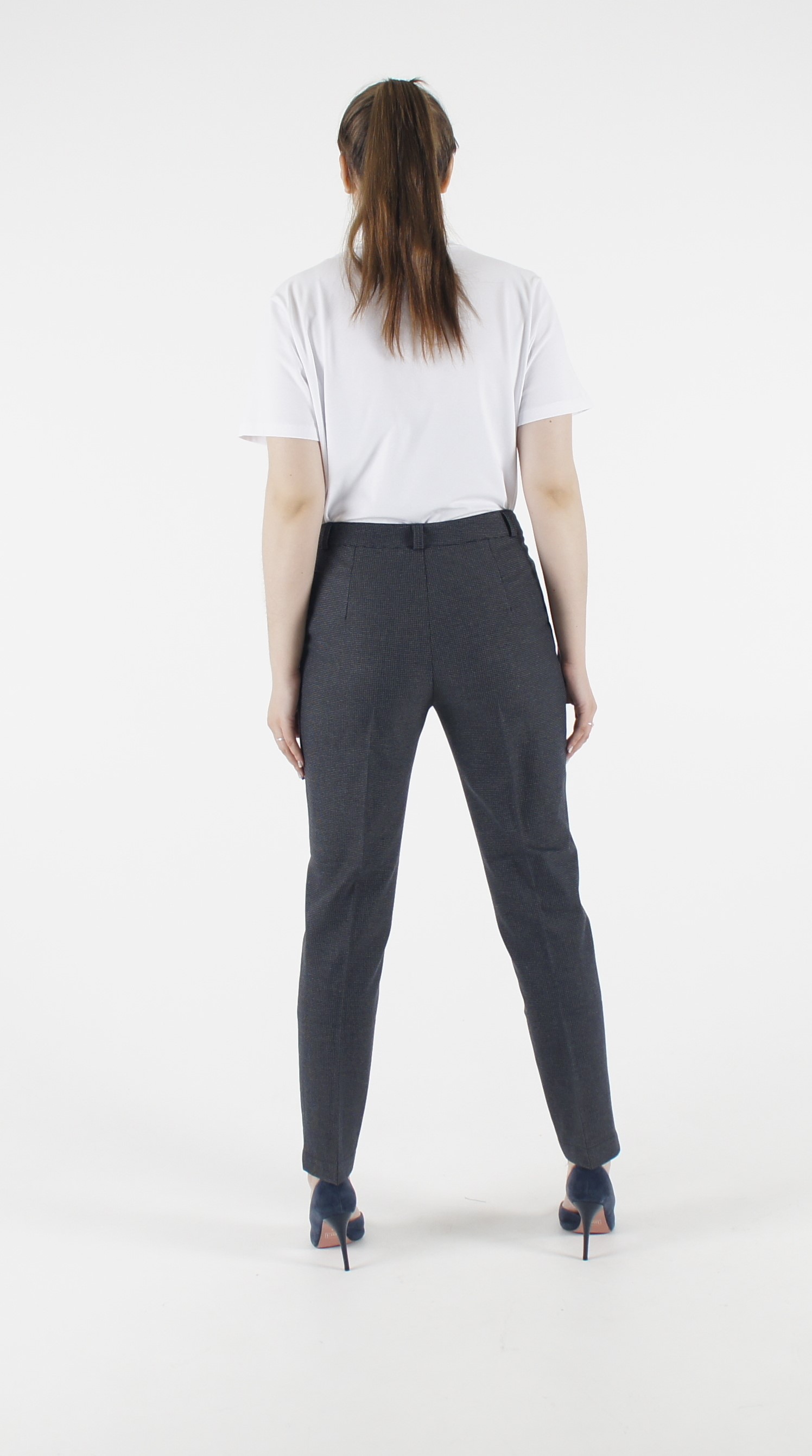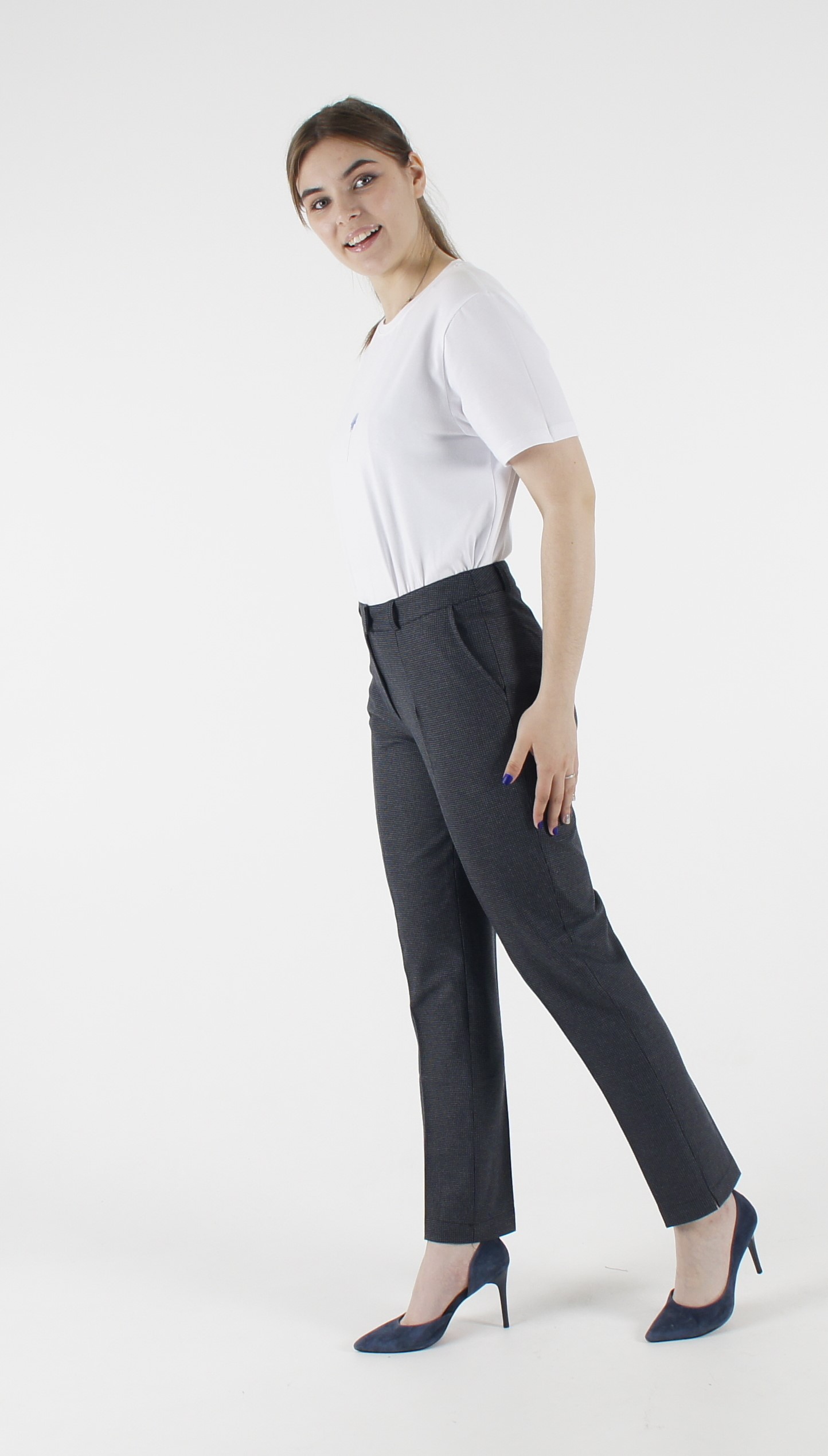 Брюки классического кроя из мягкой костюмной ткани, на поясе со шлевками и застежкой на молнию, с карманами спереди, заужены книзу.Состав ткани: Вискоза%65%, Полиэстер 30% Эластан 5%. Длина 100 см.