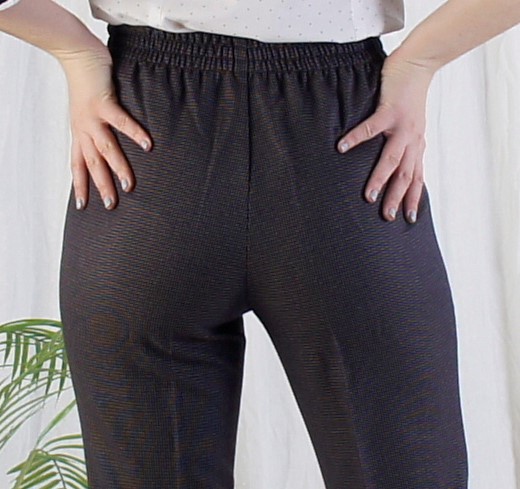 Чисто женская модель для объёмных фигур.Без молнии, пояс на резинке -очень удобны и практичны.