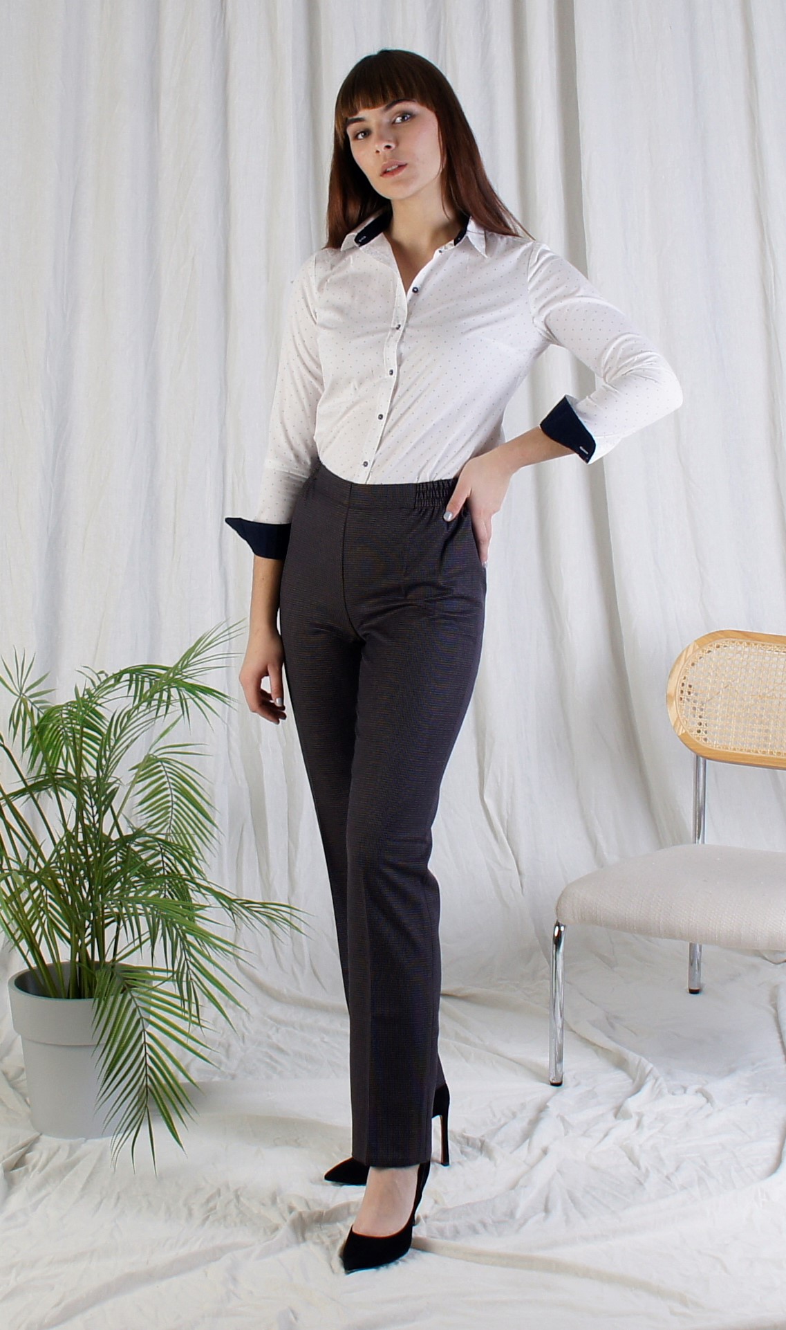 Женские брюки весна-осень Классика резинка коричневая мелкая клетка