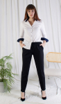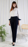 Брюки прямого кроя, пояс кокетка с двумя пуговками, шириной 5 см.Длина брюк 108 см.