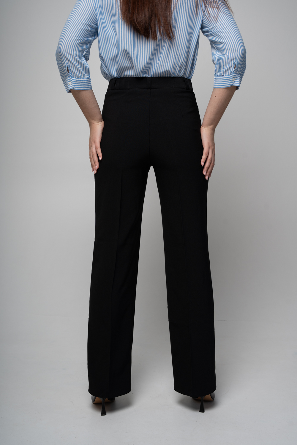 Брюки прямого покроя, верх на поясе, сбоку на резинке, застёжка на молнии с пуговкой.Имеются шлевки для ремня.Состав ткани: Полиэстер 65%, Вискоза 30%. Эластан 5%.Длина 110 см