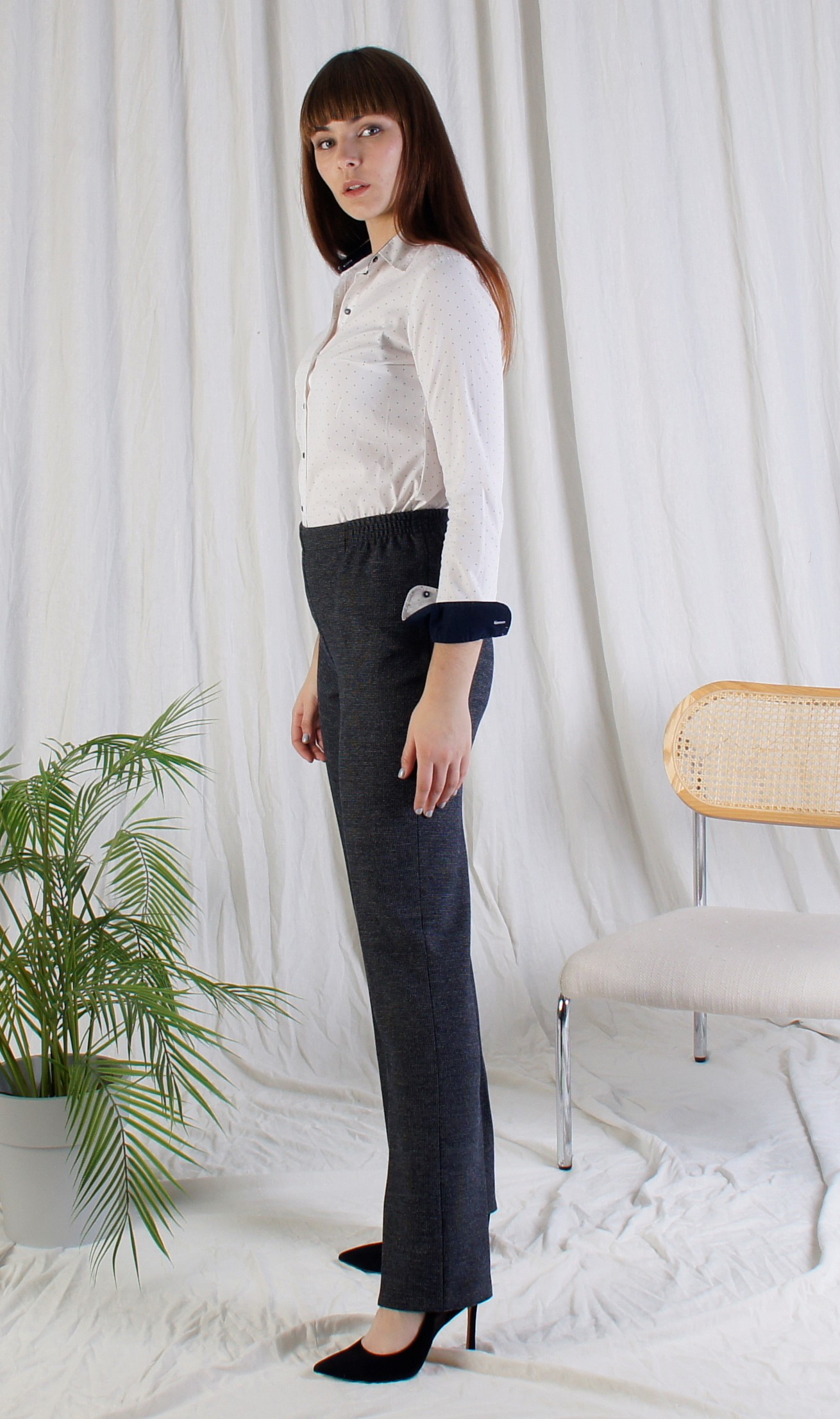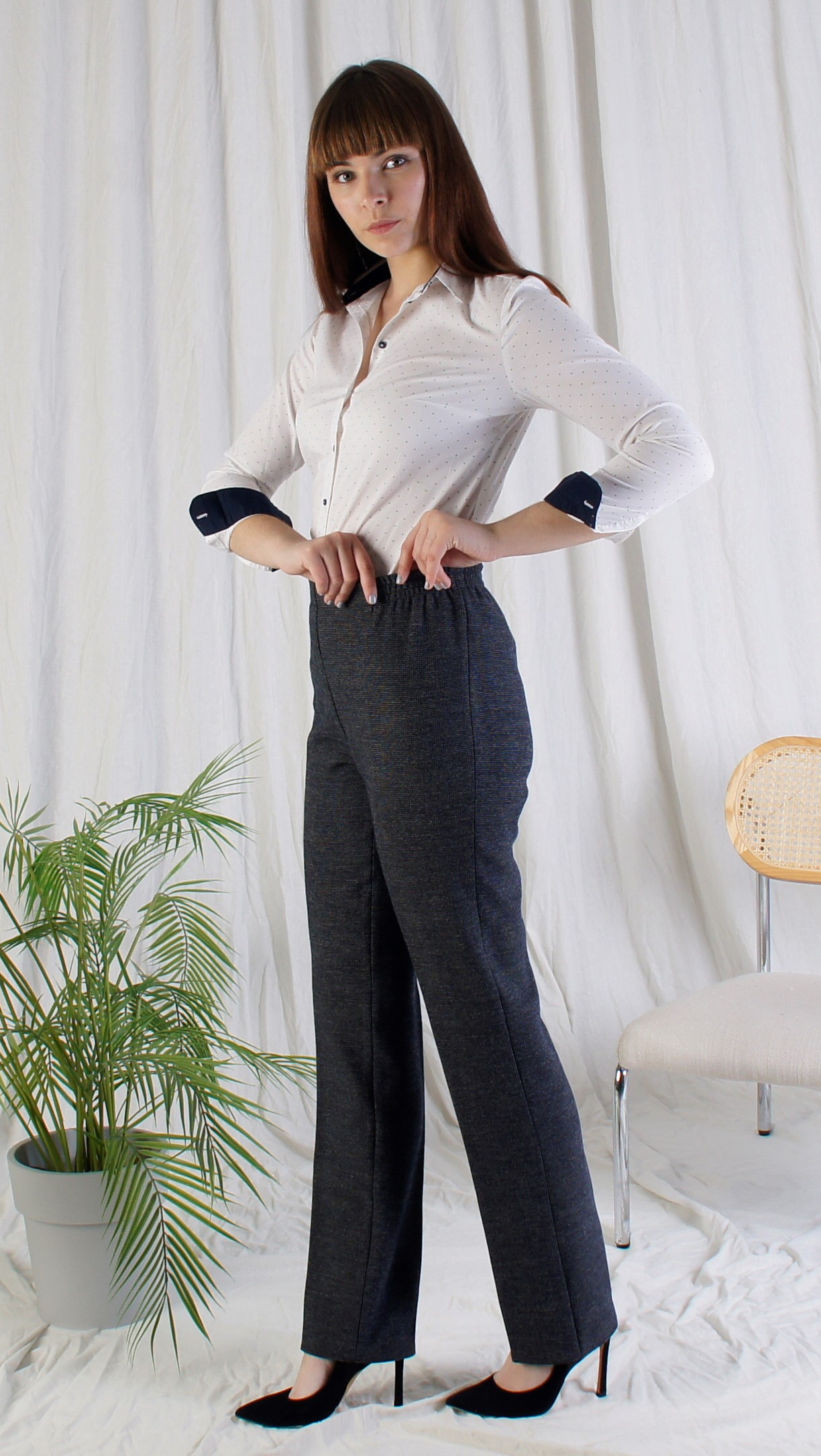 Брюки классического кроя на резинке.Без карманов.Ткань мягкая костюмная с начесом (Производства Турции) Очень удобны и практичны.Длина 103 см.Состав: Полиэстер 65%, Шерсть 30%, Эластан 5%.