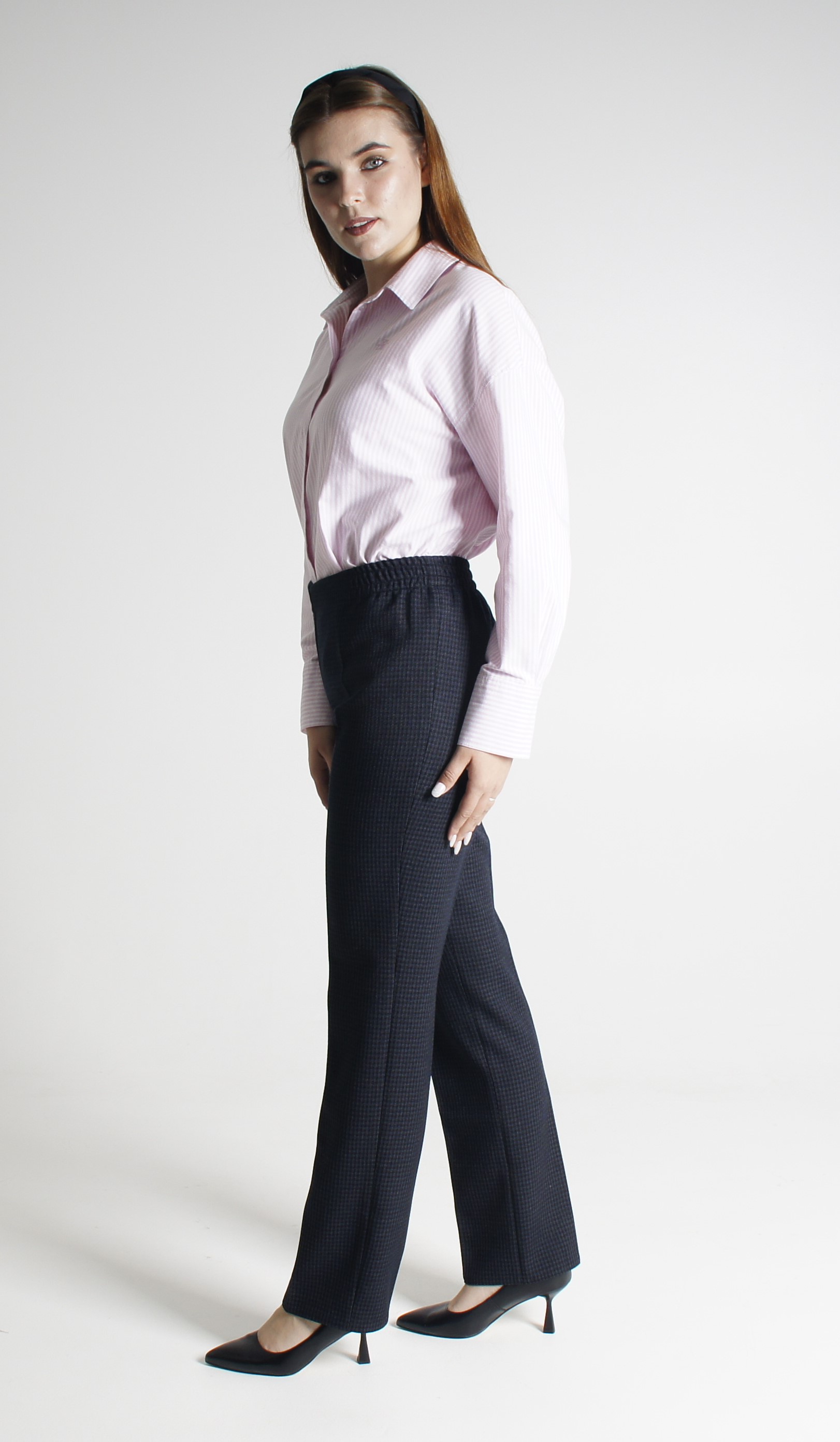 Женские брюки зима Классика резинка костюмная синяя клетка