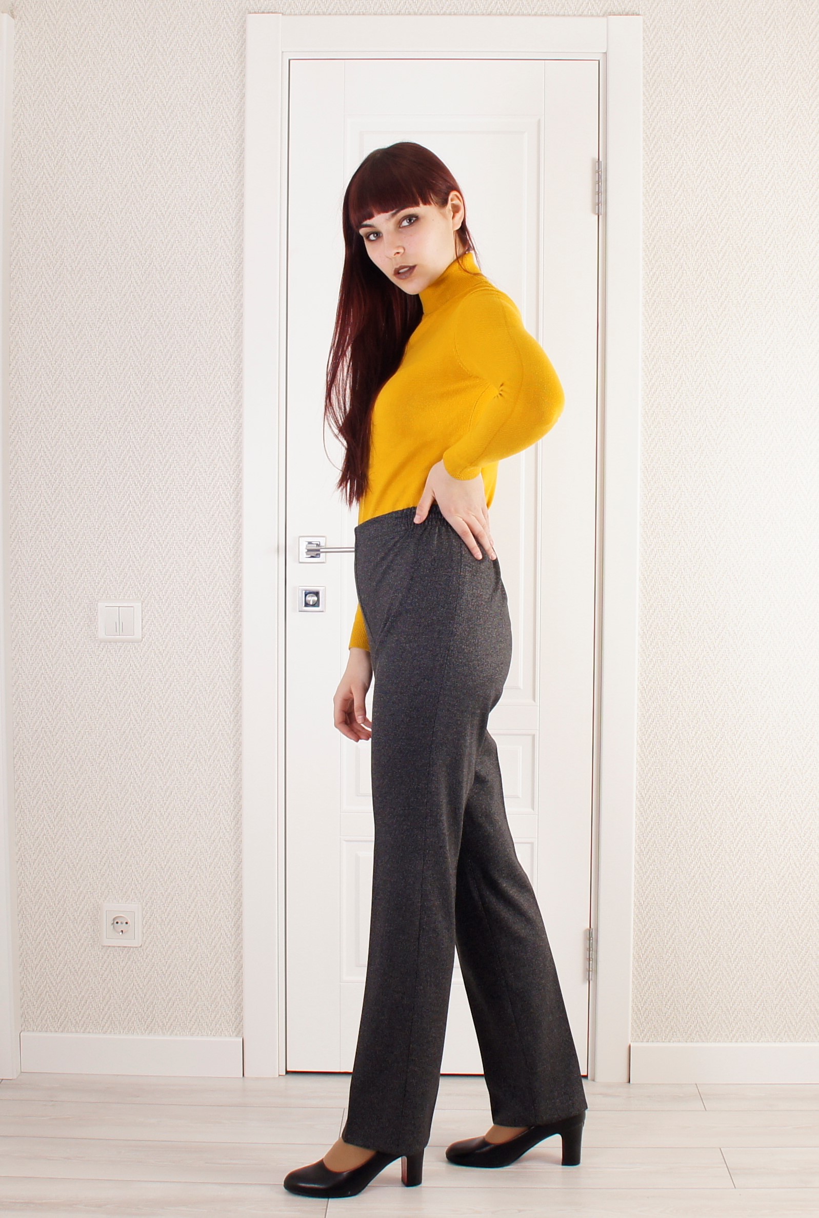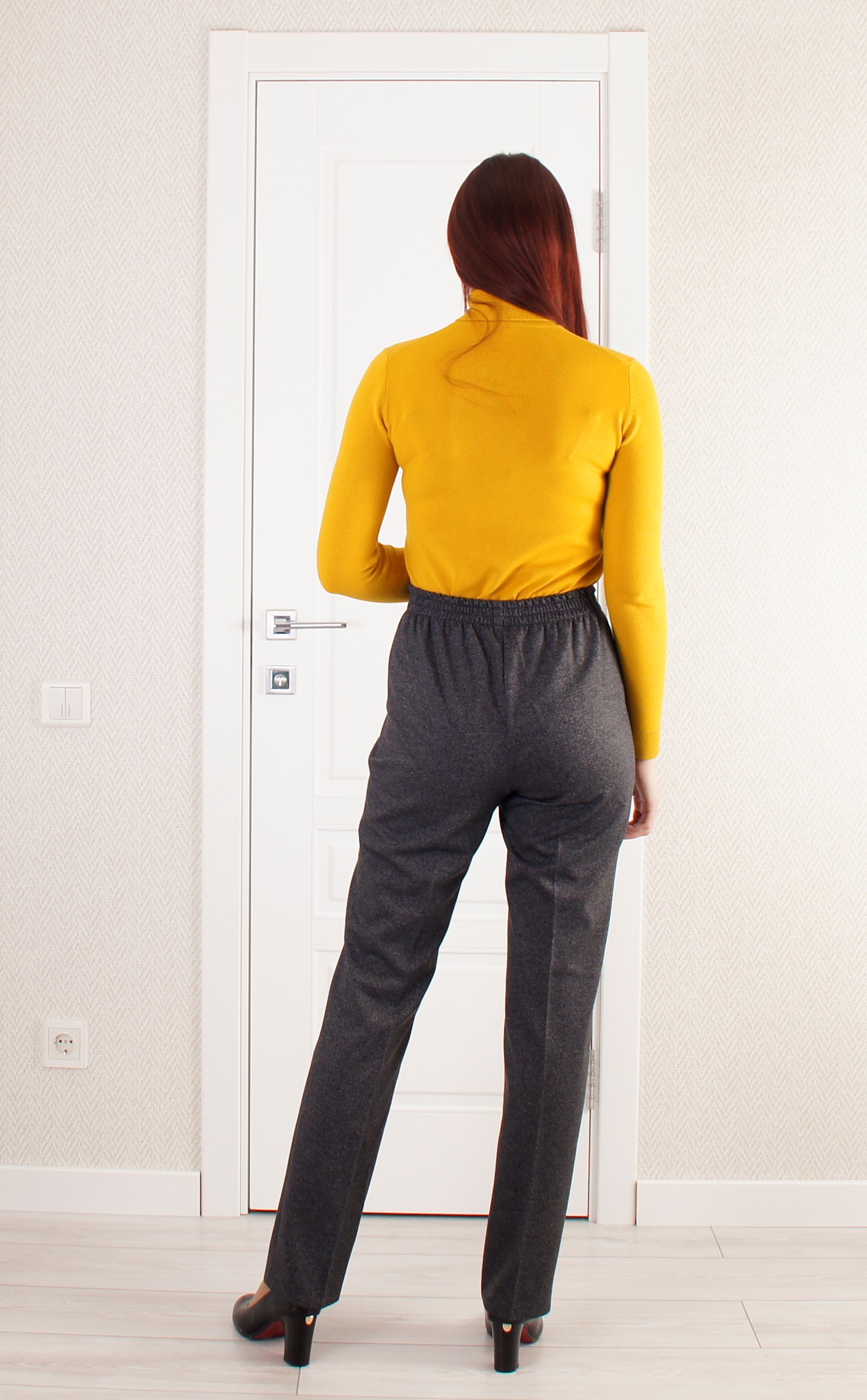 Брюки классического кроя со стрелками без молнии в поясе эластичная лента 4 см.Высокая посадка.Очень удобны и практичны.Длина по боковому шву 106 см , по внутреннему 82 см, ширина внизу 20 см.(Замеры соответствуют 48 размеру). Цвет серый.