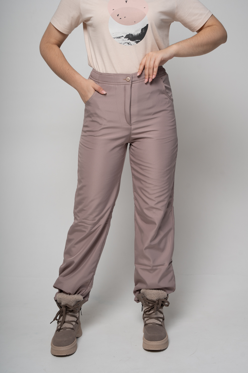 Классические брюки для работы и отдыха в холодное время, спереди карманы.Застежка на молнии и пуговица.На поясе резинка.Длина 106 см.Ткань плащевая цвета кофе с молоком с подкладом из флиса.Состав ткани: Полиэстер 100%