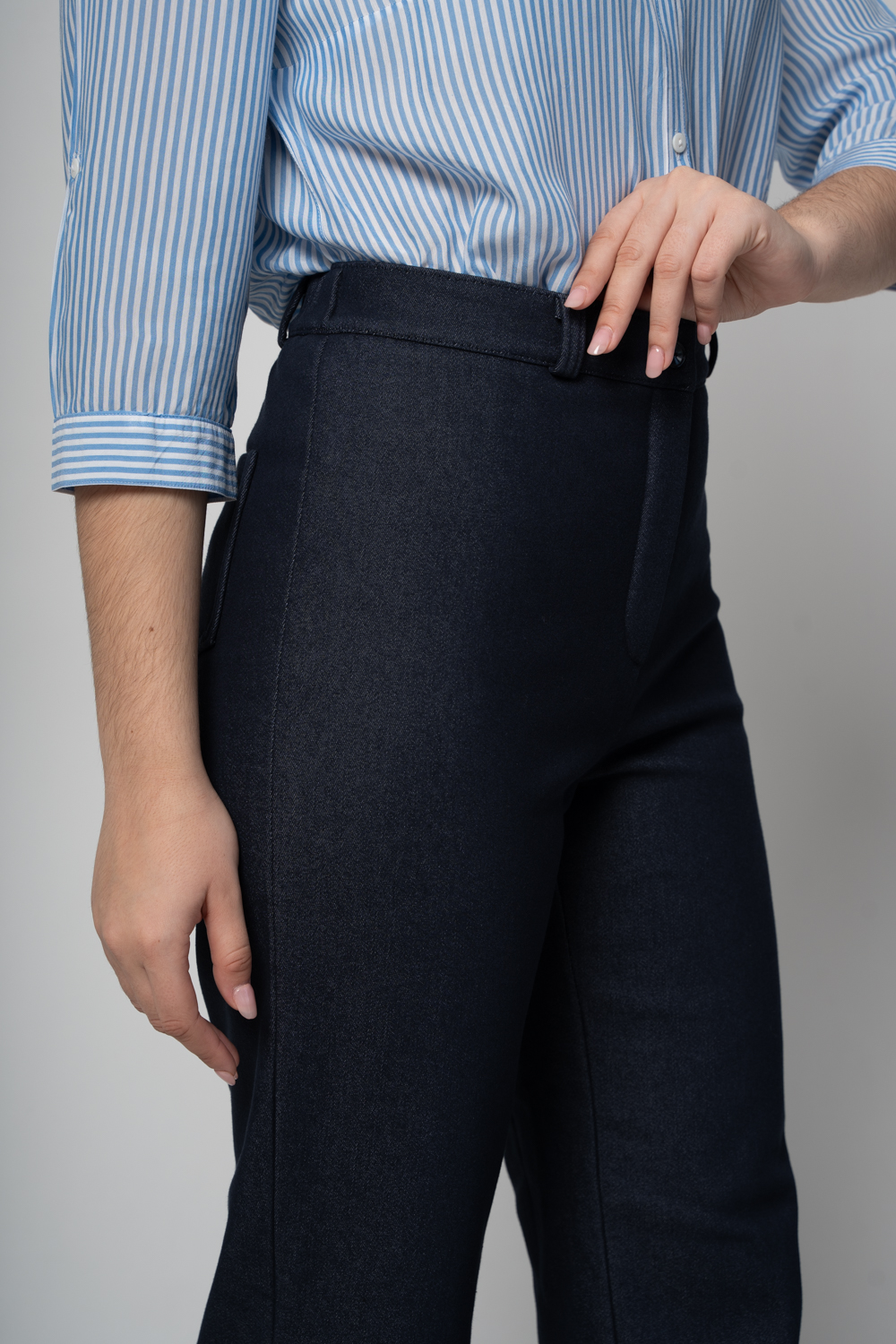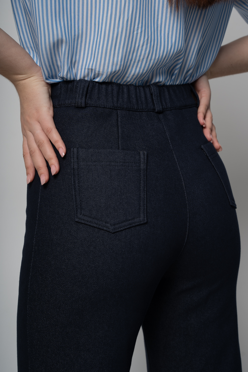 Брюки прямого кроя, верх на поясе, ширина 4 см,сзади в пояс вставлена резина, что помогает подобрть размер по талии.Застежка на молнии и пуговицу.Имется шлевки для ремня.На задней половине брюк имеются накладные карманы.Ткань джинс на флисе.Состав:Хлопок 95%, Эластан 5%Длина по боковому шву 108 см, по шаговому 84 см, ширина внизу 25 см.