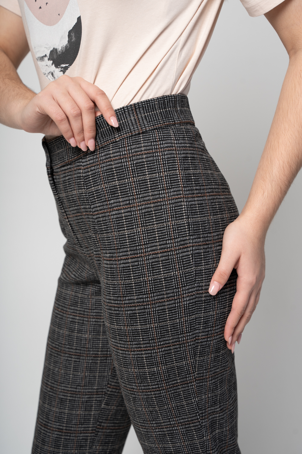 Женские брюки зима Зауженная клетка костюмная с начесом