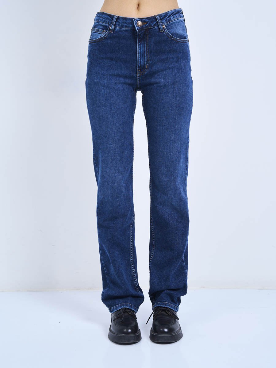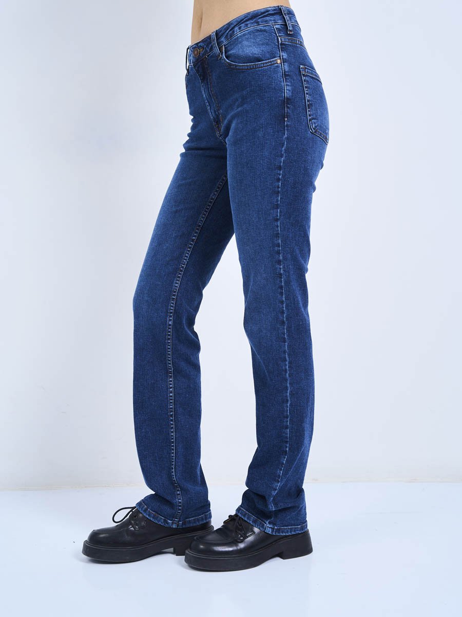 Женские классические джинсы с пятью карманами. Посадка Regular fit (полуоблегающие по бедру). Для улучшения посадки по талии сделан подкройной пояс из 2-х частей. Средняя высота талии спереди и высокая сзади. Застежка на молнии. Немного зауженные к низу. Выполнены из слабоэластичной ткани denim comfort stretch. Средняя стирка со слабовыраженными потёртостями и "усами"спереди и потертостями сзади. Параметры указаны для размера 28. Длина внутреннего шва - 80,0 см.