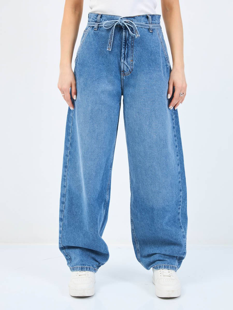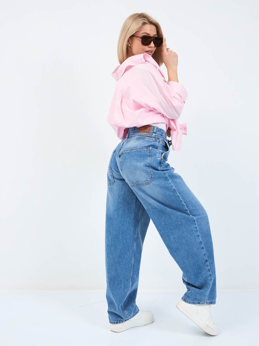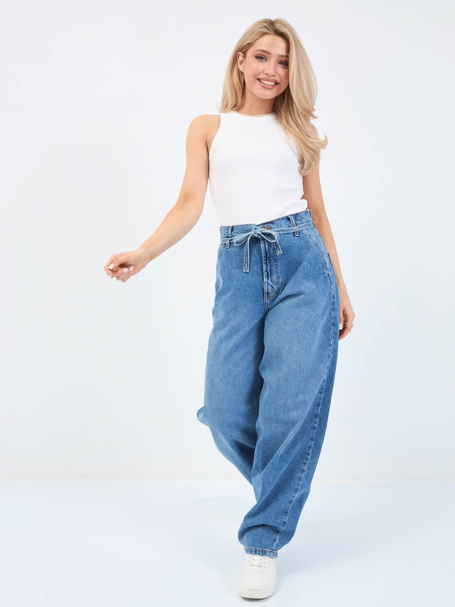 Представляем вам женские супермодные стильные комфортные джинсы с пятью карманами. Эти джинсы созданы для тех, кто ценит стиль и удобство в повседневной жизни. Baggy fit - свободные в бедрах и бедре, с высокой талией спереди и сзади. Удобная застежка на молнии. Передние карманы "хулинаны" и шнур из джинсовой ткани по низу пояса добавляют уникальности. Широкие штанины, зауженные к низу, создают современный силуэт. Изготовлены традиционной хлопковой ткани denim. Эти джинсы легко сочетаются с различными элементами гардероба, позволяя вам экспериментировать с вашим стилем.