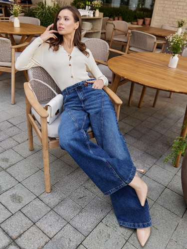 Откройте для себя безграничный комфорт и стиль с нашими джинсами ПАЛАЦЦО (PALAZZO). Эти широкие джинсы с высокой посадкой идеально подходят для создания расслабленного, но элегантного образа. Также идеально подходят как для повседневной носки так и для особых случаев. Изготовленняые из мягкого традиционного денима, они обеспечивают полное сочетание удобства и долговечности. Высокая талия с вытачками сзади для улучшения посадки пояса, карманы "хулиганы", свободные штанины сильно расширяющиеся к низу, позволяют получить утонченный силуэт и подчеркнуть особенности женской фигуры наилучшим образом и в тоже время обеспечить свободу движений. Эти джинсы с уникальным тинтованным эффектом "GET DIRTY", т.е. эффектом  запачканных джинсов добавят изюминку в ваш гардероб.