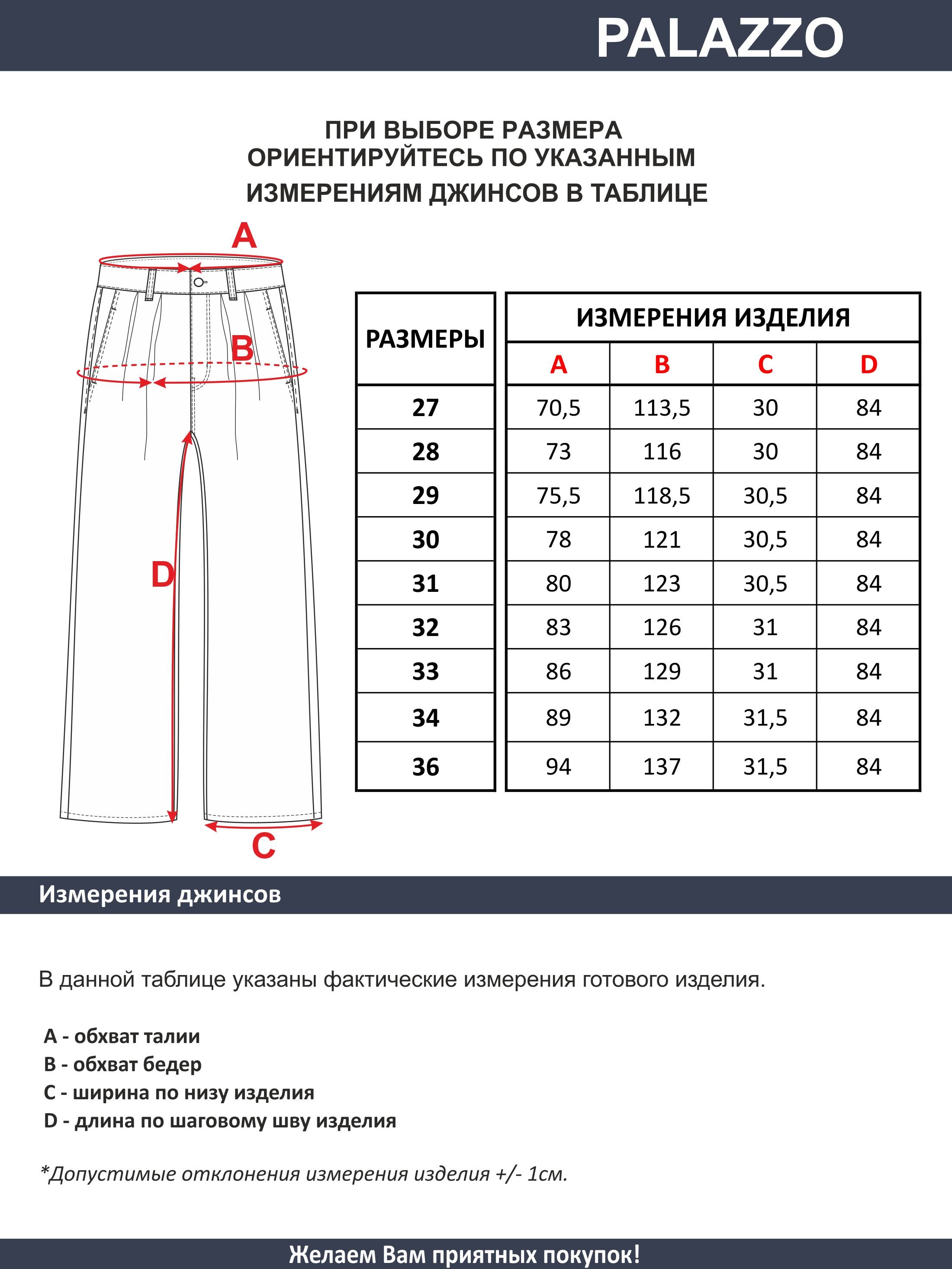 Познакомьтесь  с нашими новыми брюками ПАЛАЦЦО (PALAZZO) из джинсовой ткани -прекрасным сочетанием  актуальных трендов с практичностью денима.  Эти широкие брюки с высокой посадкой и глубокими складками спереди формируют структурированный, изысканный и объемный вид, излучающий непринужденную изысканность. Свободные, струящиеся штанины, расширяющиеся к низу, обеспечивают эффектный летящий силуэт и полную свободу движений. Высокая талия с вытачками сзади гарантируют идеальное прилегание пояса, а практичные карманы "хулиганы" добавляют образу дерзости.  Изготовленны из мягкого не толстого денима, который не сковывает движений и обеспечивает комфорт на  весь день.                 Эти брюки невероятно универсальны - ваша палочка-выручалочка  для   множества  образов.