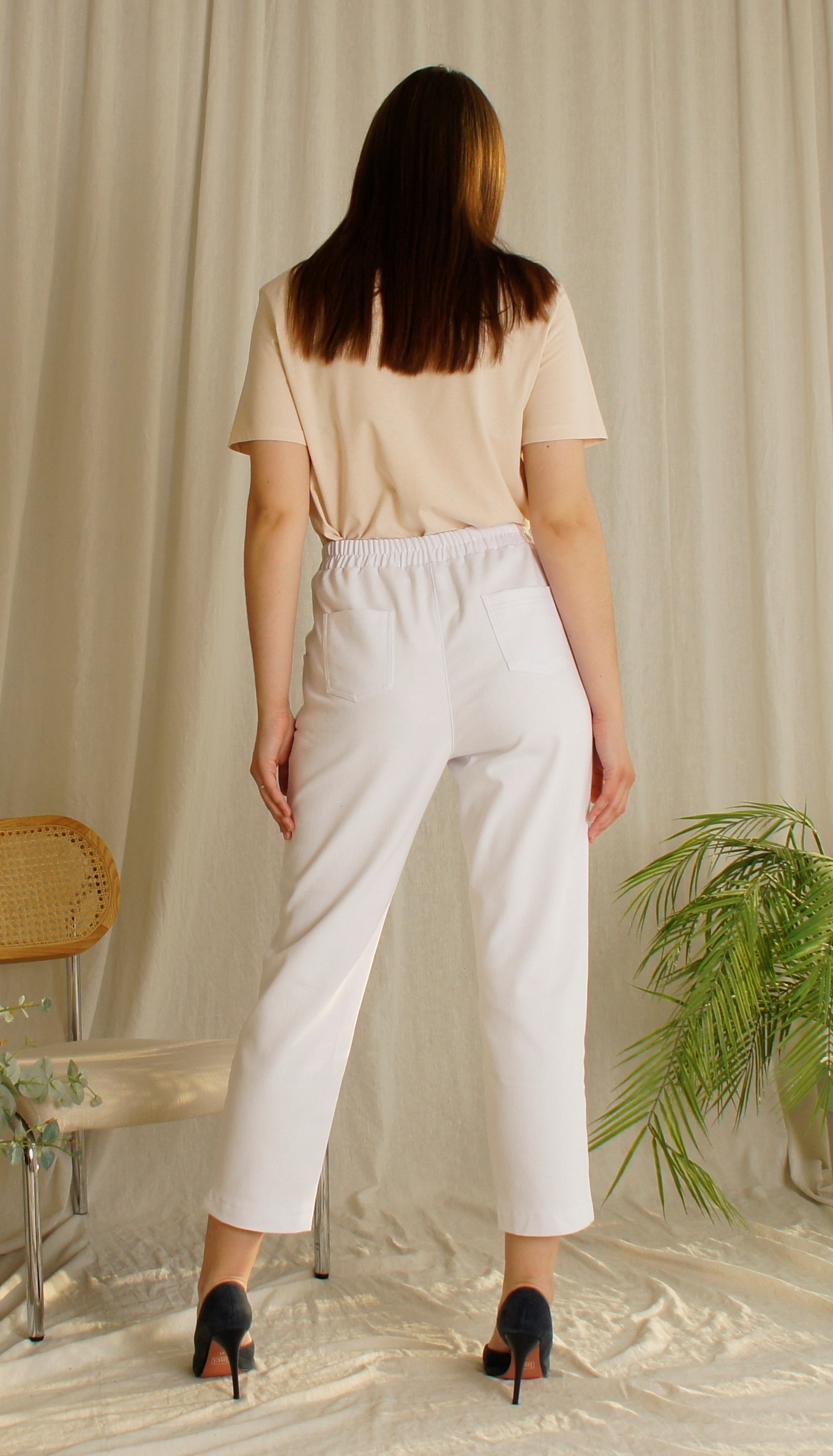 Женские летние брюки Брюки 7/8 джинс белый зауженные на резинке