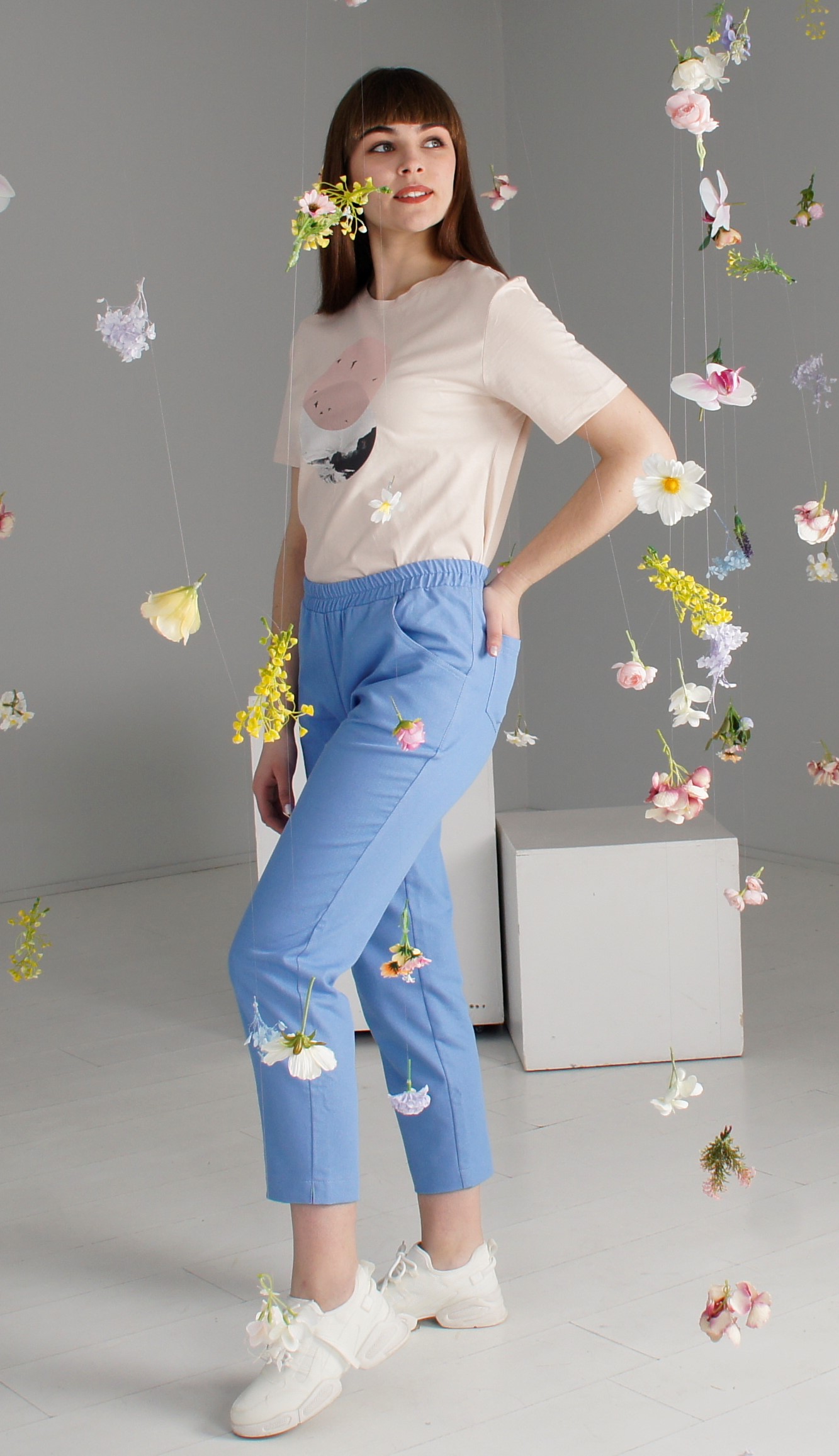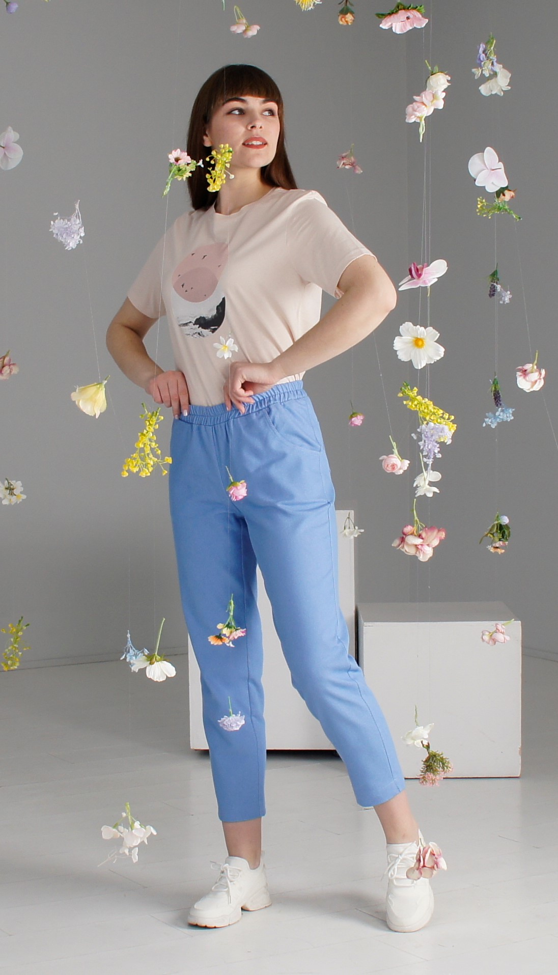 Женские летние брюки Брюки 7/8 джинс голубой зауженные на резинке