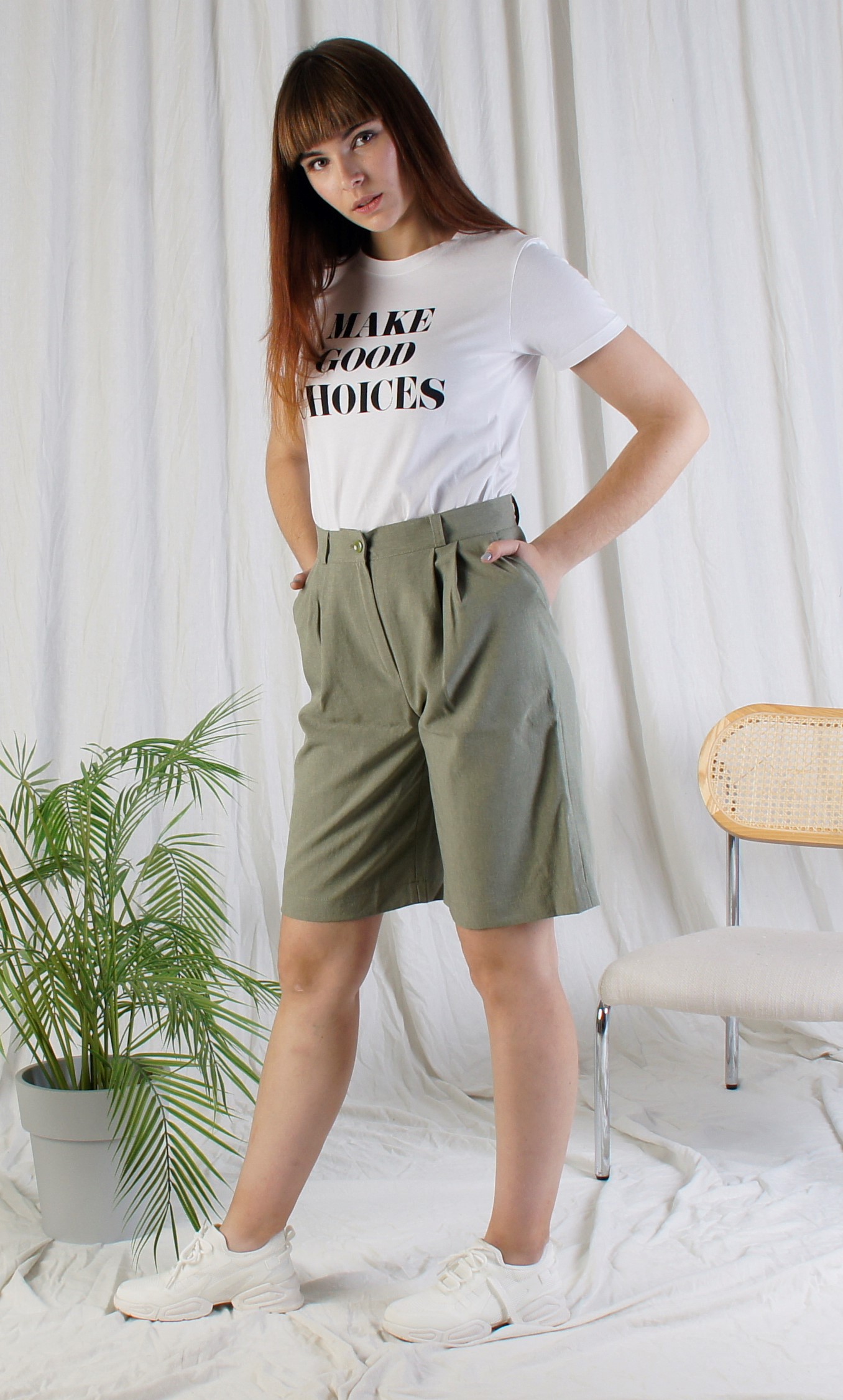 Женские летние брюки Бермуды лен олива