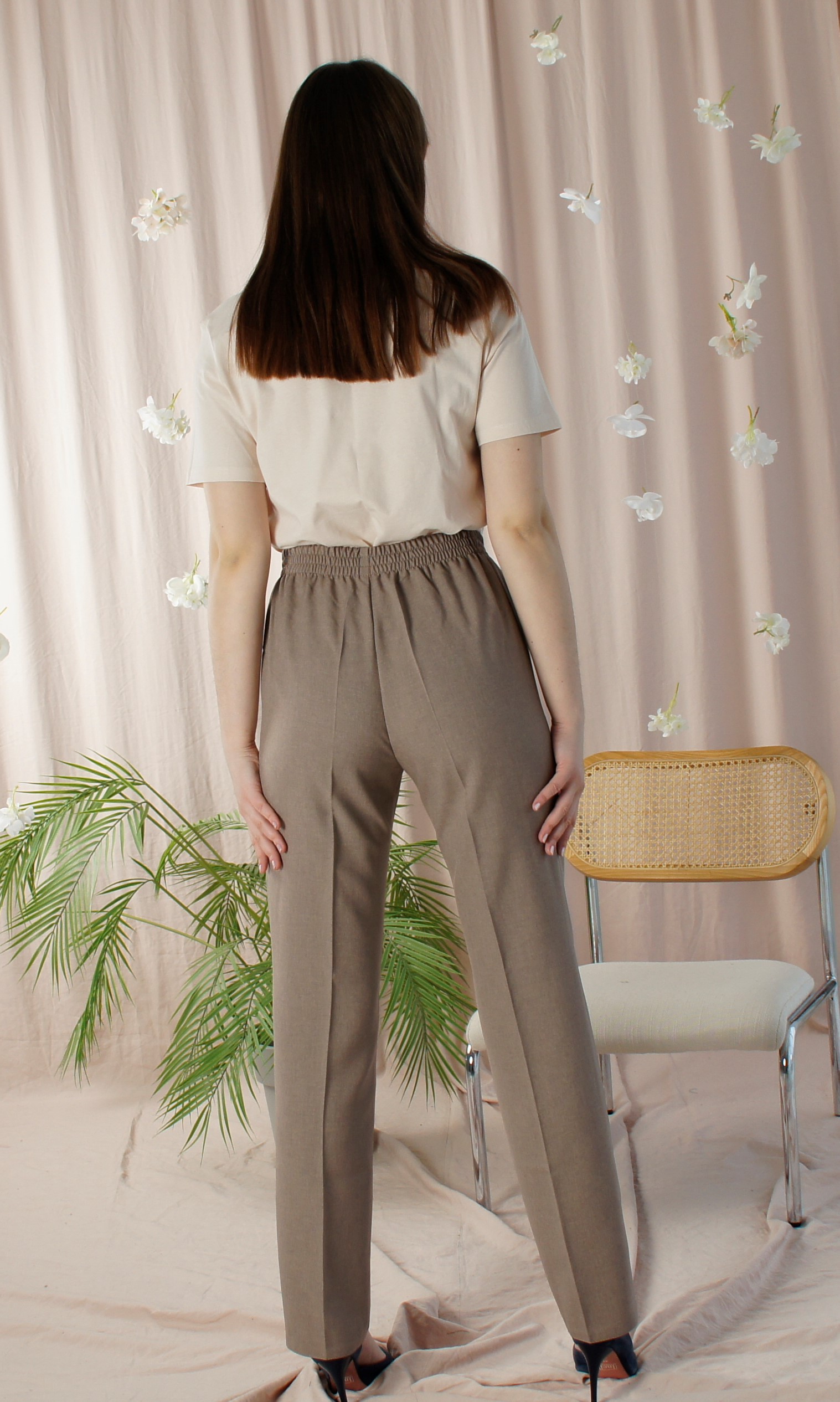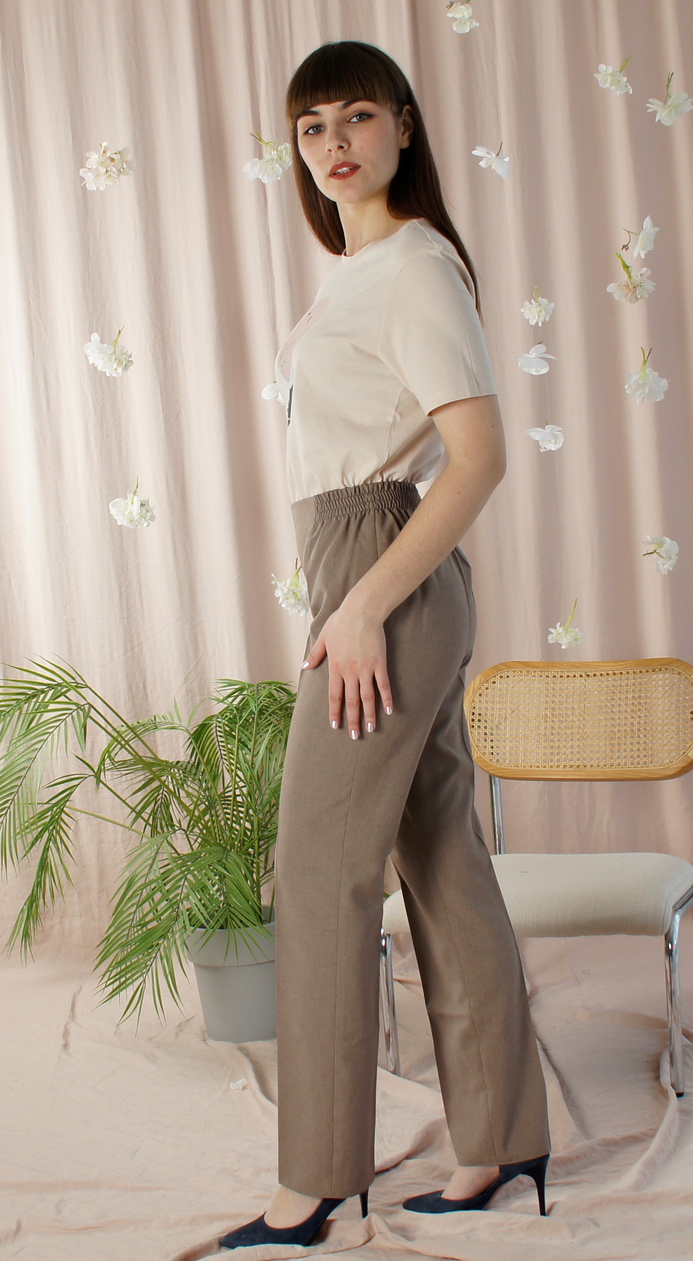 Чисто женская модель для объёмных фигур.Без молнии, пояс на резинке -очень удобны и практичны.Длина 106 см.