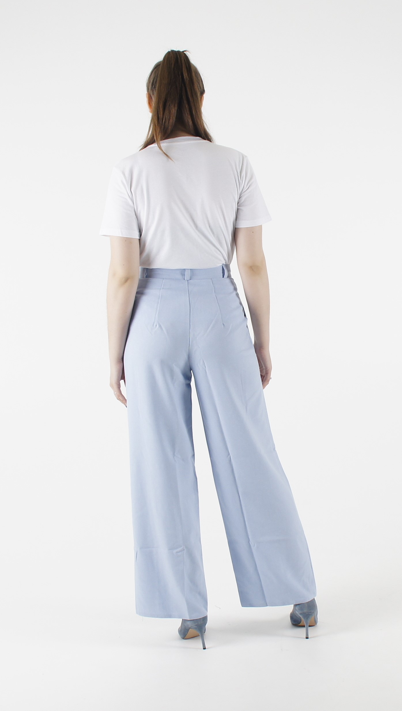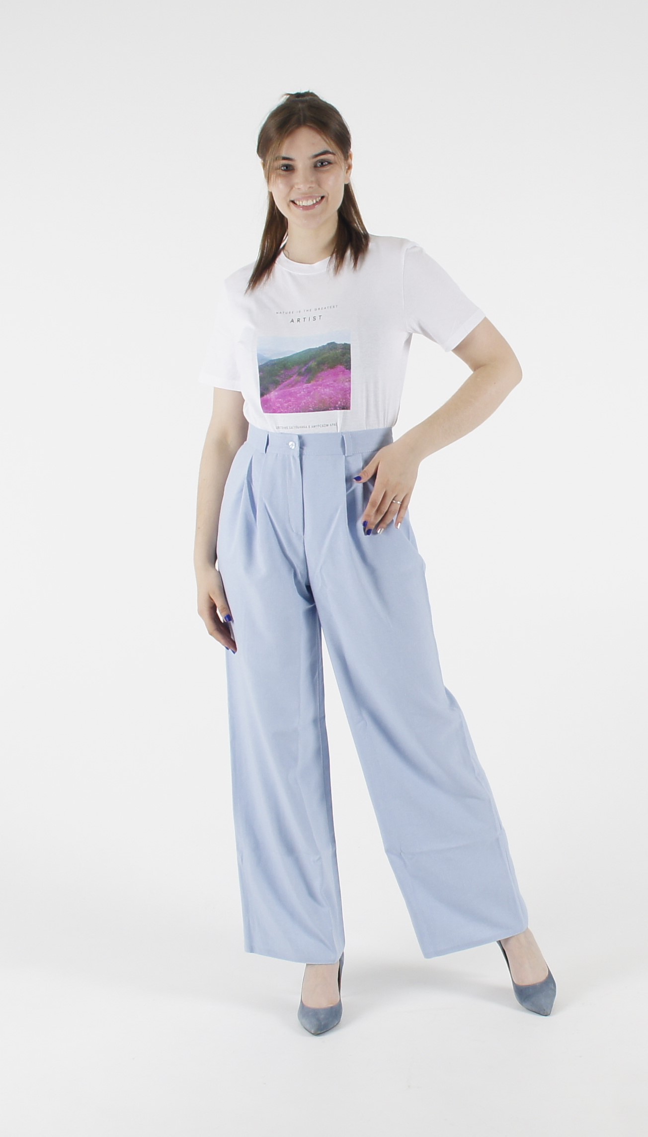 Женские летние брюки "Палаццо" лен голубые