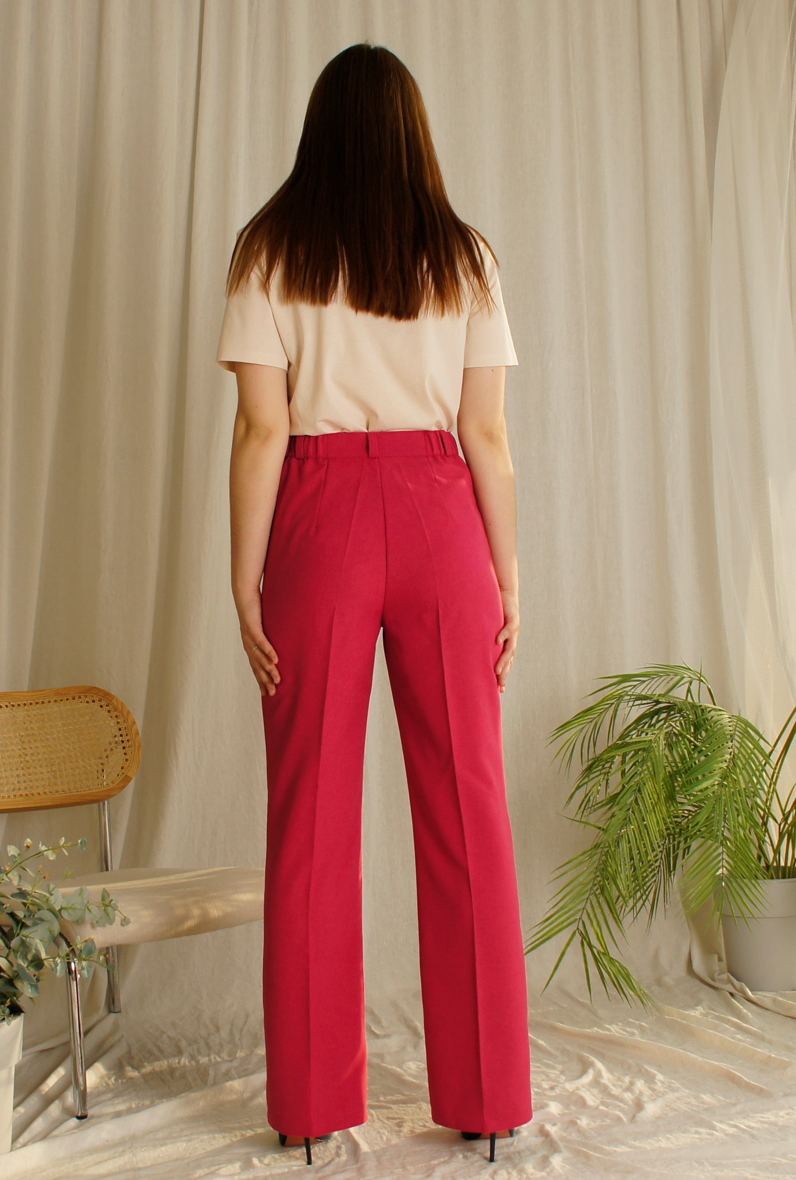 Женские летние брюки Трубы лен фуксия