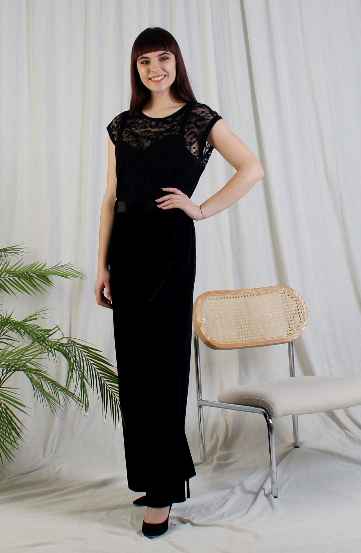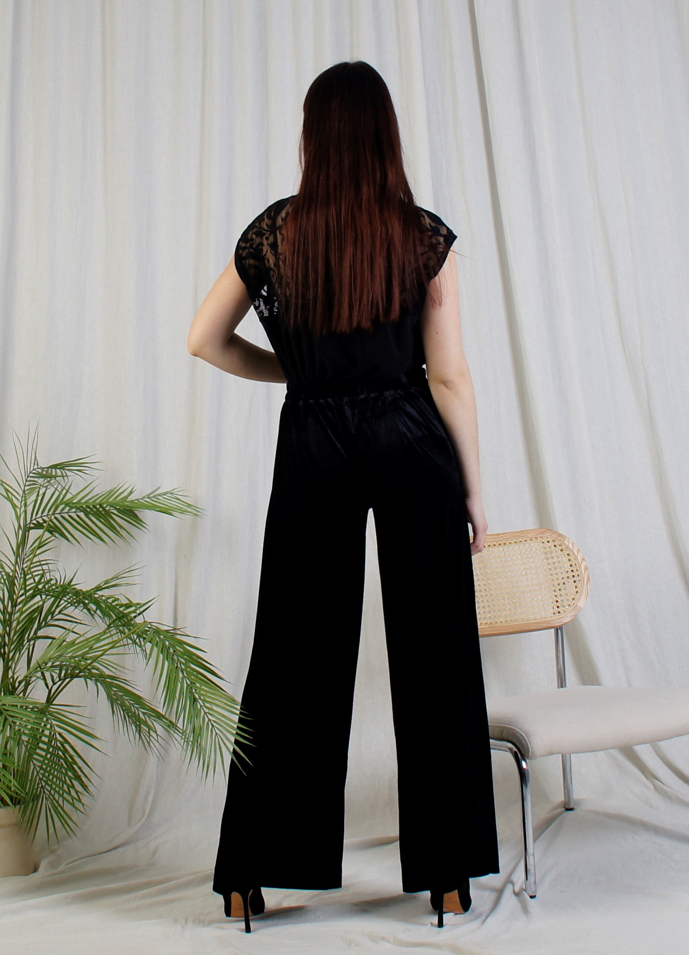 Нарядные брюки из мягкого стрейч-бархата.Ширина внизу 73 см.Длина по боковому шву 102 см.Состав: Полиэстер 100%
