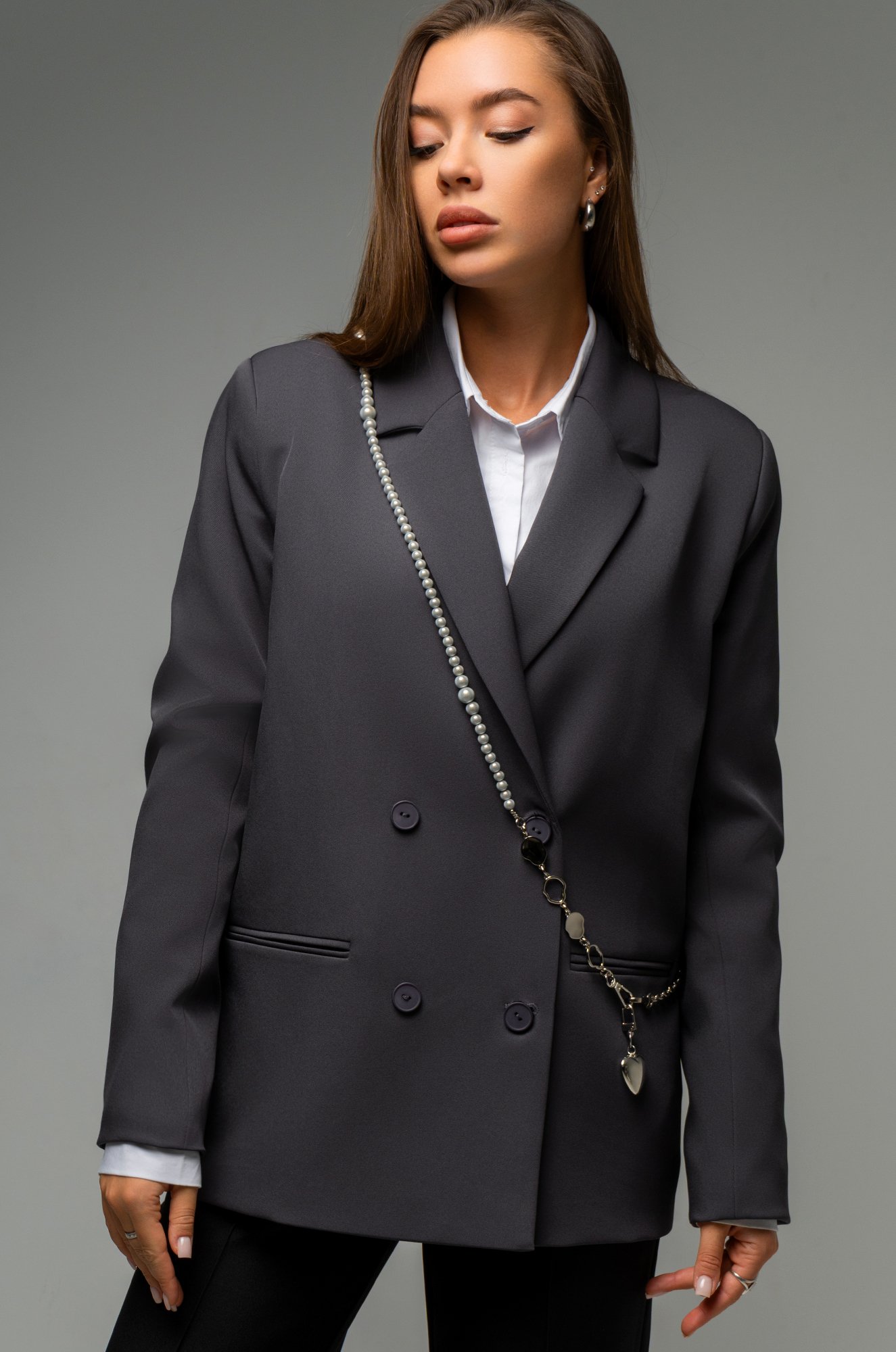 Женский пиджак оверсайз прямого кроя выполнен из качественной костюмной ткани. Двубортный удлиненный пиджак с английским воротником актуален летом, осенью и весной как в классическом, так и с кэжуал (casual) стилем.