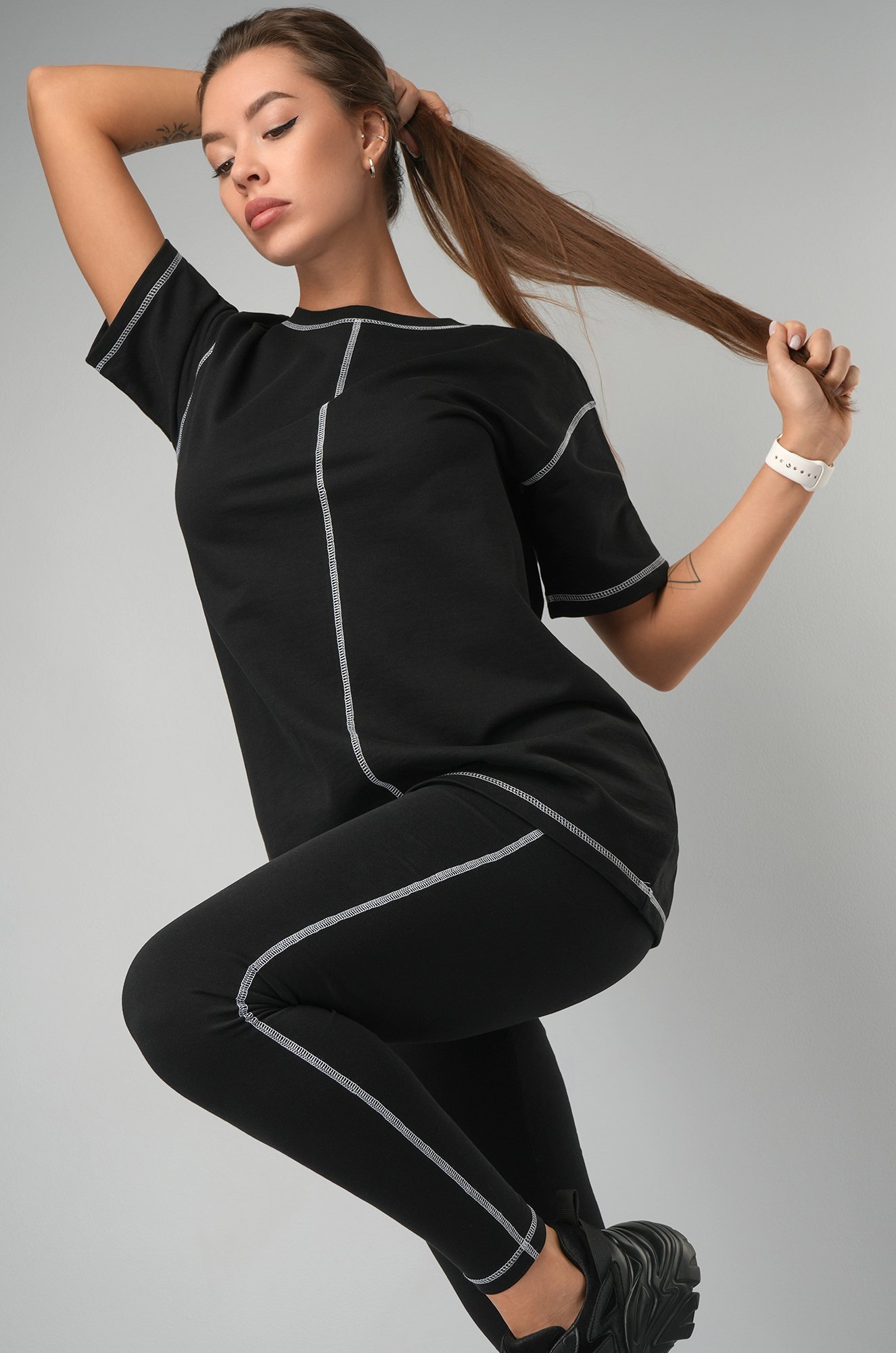 Удобный, стильный и продуманный до мелочей женский костюм с лосинами от Happyfox сочетает в себе комфорт и изящность. Черный спортивный костюм станет любимым вариантом как для дома, так и для спорта.