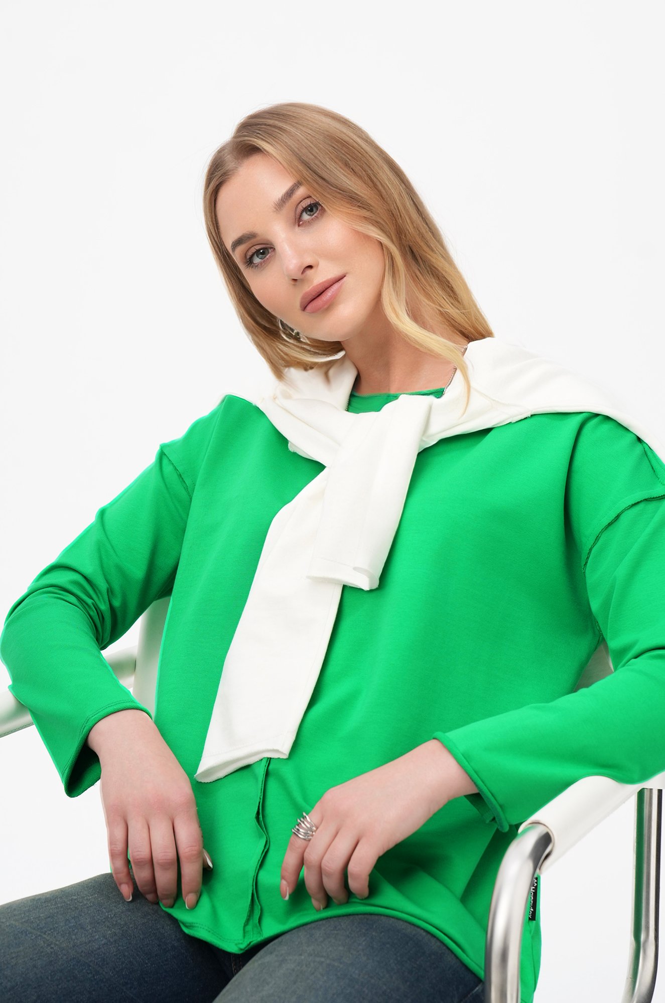 Комфорт с характером — зеленый женский лонгслив в стиле оверсайз создаёт расслабленное настроение и стильно завершает повседневный образ. Свободный хлопковый лонг идеален для лета, прохладных осенних вечеров и в демисезон.